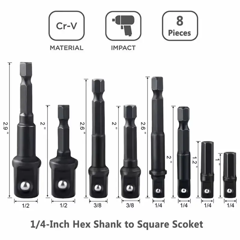 Transform your power drill into a high-speed nut driver with this 12pcs Impact Socket Adapter and Reducer Set. Perfect for various drilling tasks, this set includes extension pieces and socket adapters. It turns your power drill into a versatile tool for different applications. The set is designed for 1/4-inch compatibility, ensuring a snug fit for your drill.