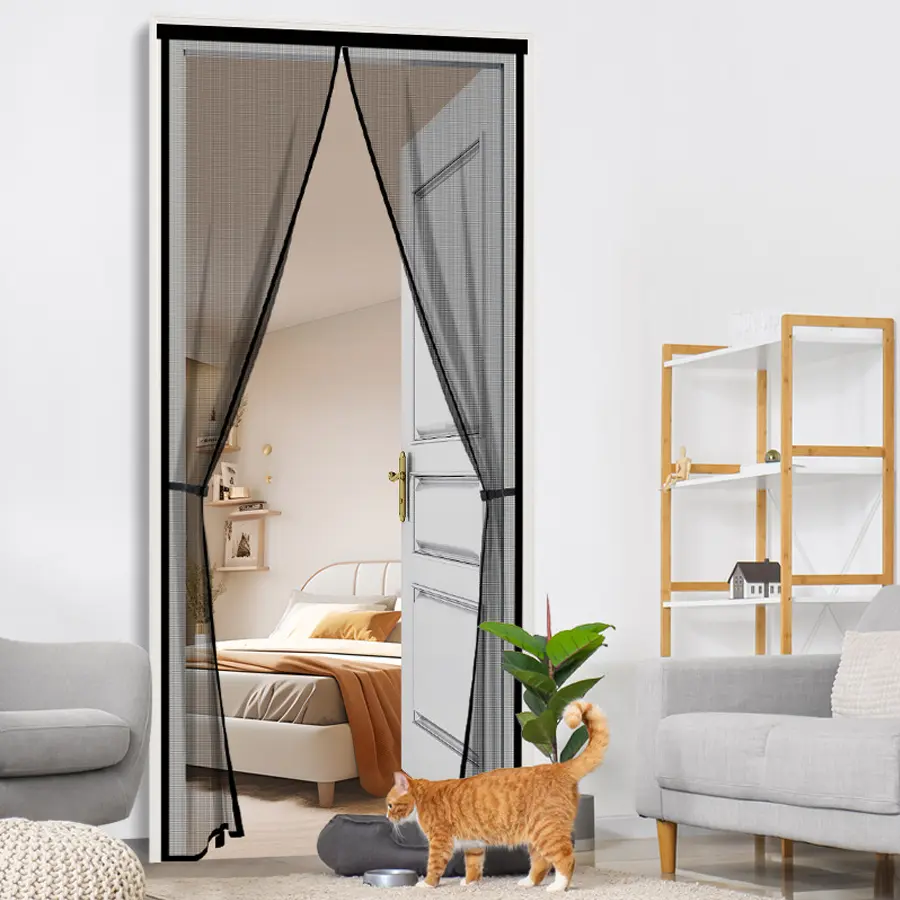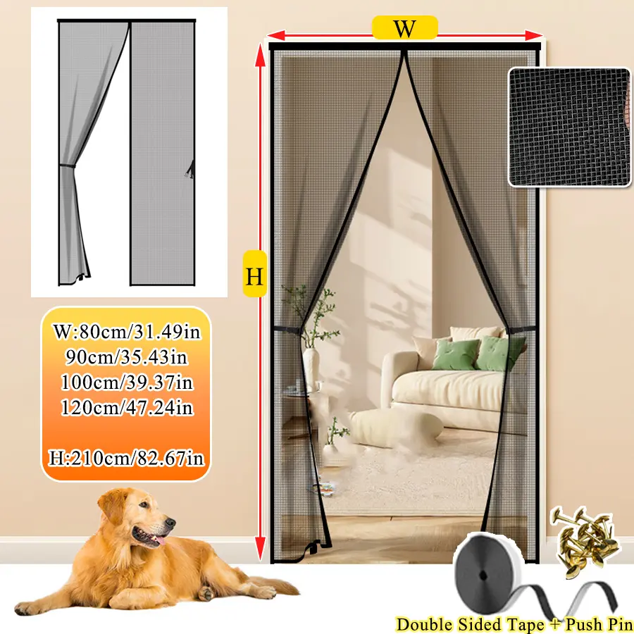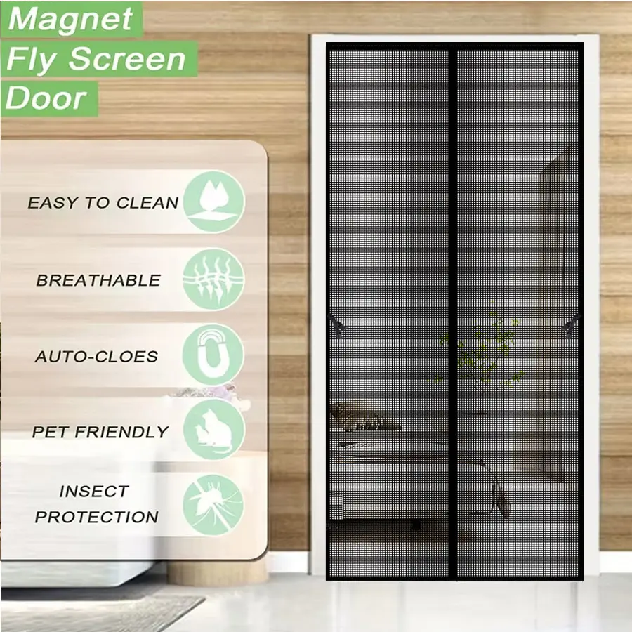 Magnetic Screen Door, Hands-Free Mesh Door Curtain with Storage Buckets, Windproof Pet Friendly Mosquito Net for Summer, Fits Bedroom, Kitchen, Garage Door, Durable Home Screen
