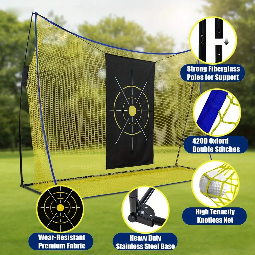 A Golf Practice Net Featuring a Spacious 10X7-Foot Mesh, Complete with a Target Fabric. This Personal Practice Range Is Crafted for Golfers, Suitable for Both Indoor And Outdoor Use