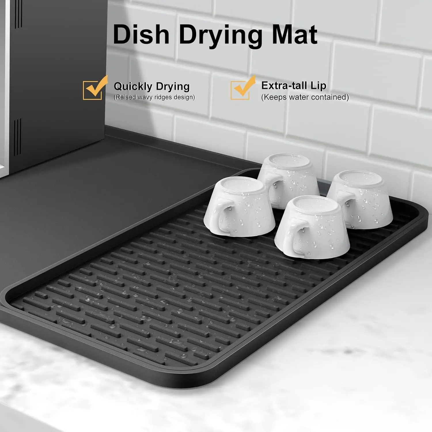 Silicone Coffee Mat, 24''x16'' Bar Mat with Detachable Dish Drying Mat