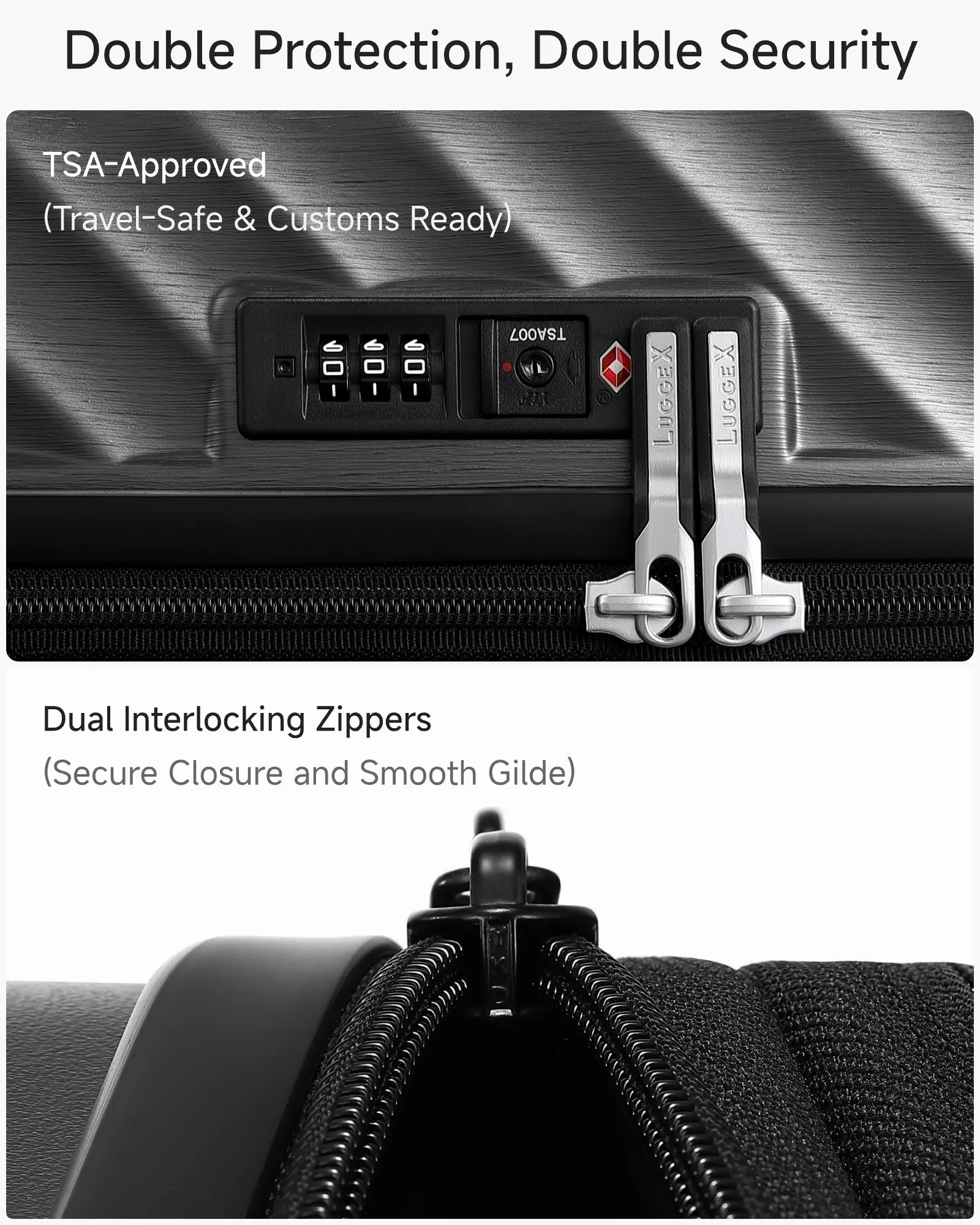 ·TSA Lock & Anti-Burst Zipper Security: TSA locks for luggage (TSA-approved lock) allows hassle-free customs inspections without damage. Reinforced anti-burst zipper provides tight sealing to prevent breakage or forced opening, keeping belongings safe throughout your journey.