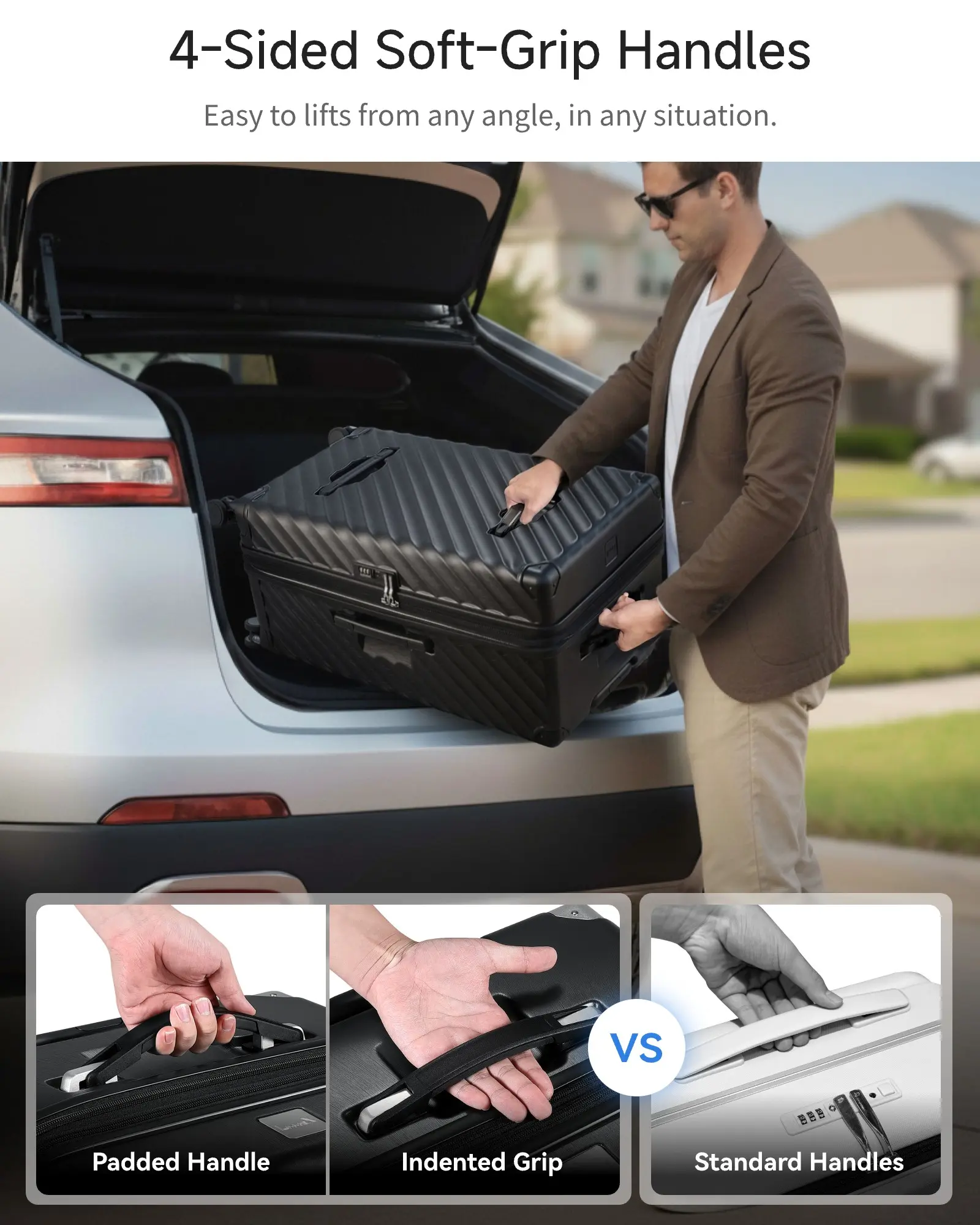 ·Durable 100% Polycarbonate with Reinforced Corners: Crafted from 100% polycarbonate, this polycarbonate luggage, using a material stronger and more impact-resistant than ABS, protects your luggage from compression and drops. Four aluminum alloy corner guards shield vulnerable edges, extending suitcase life.