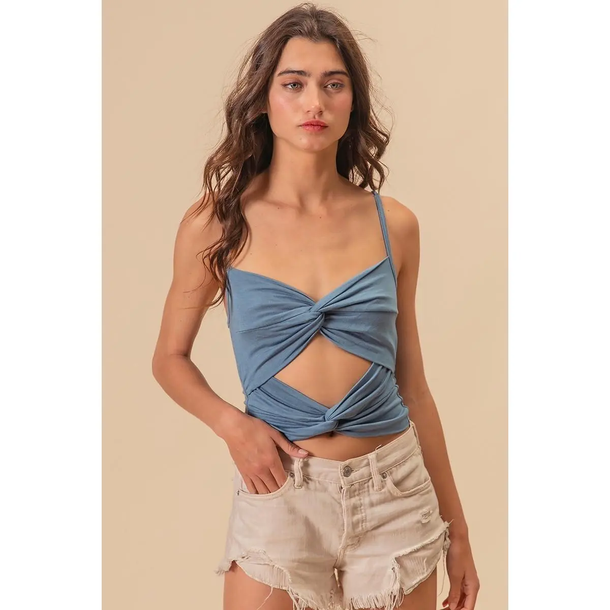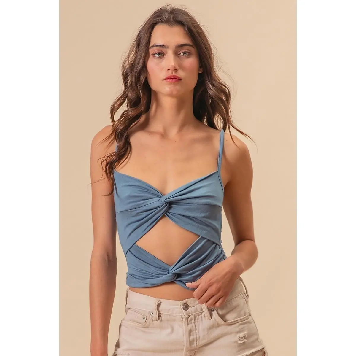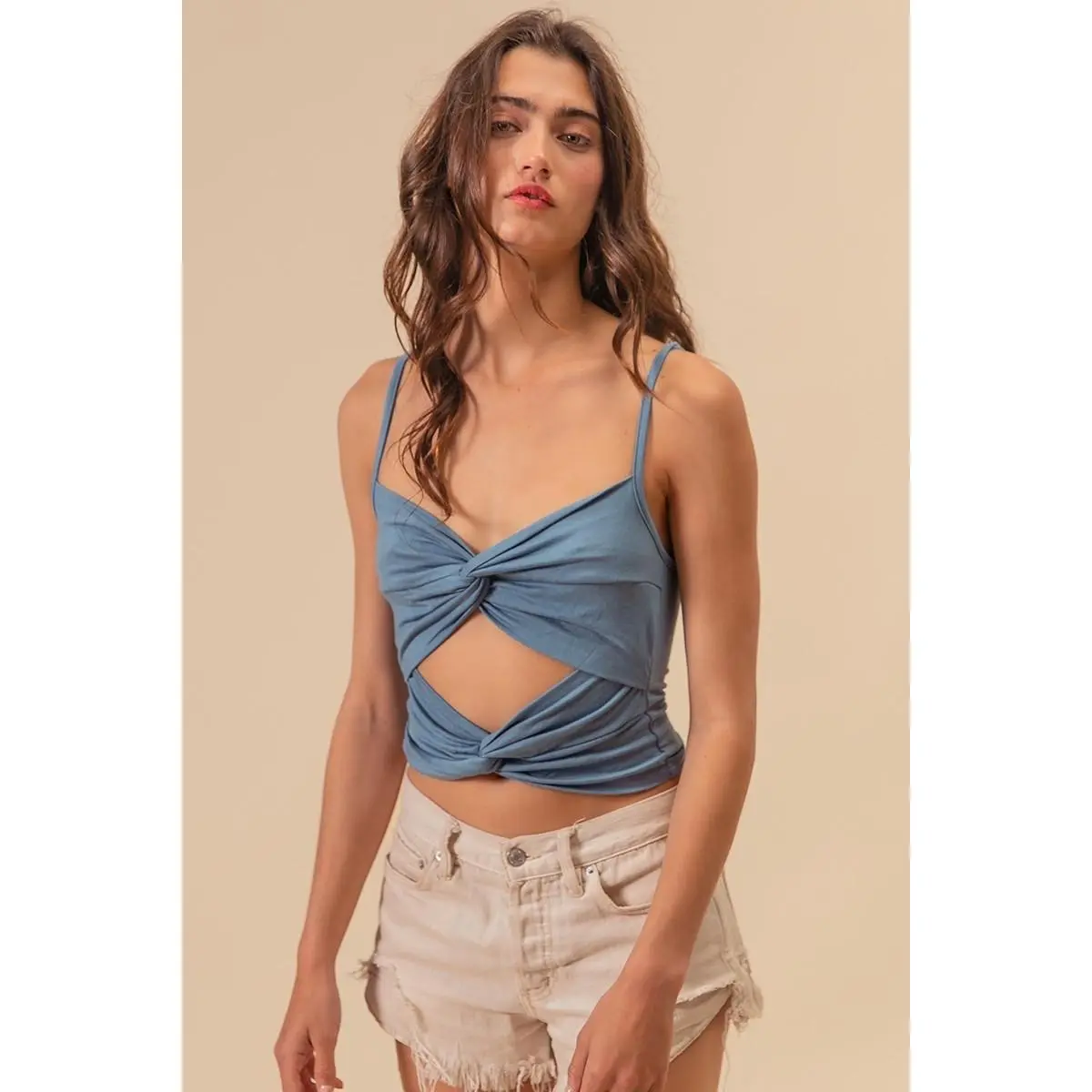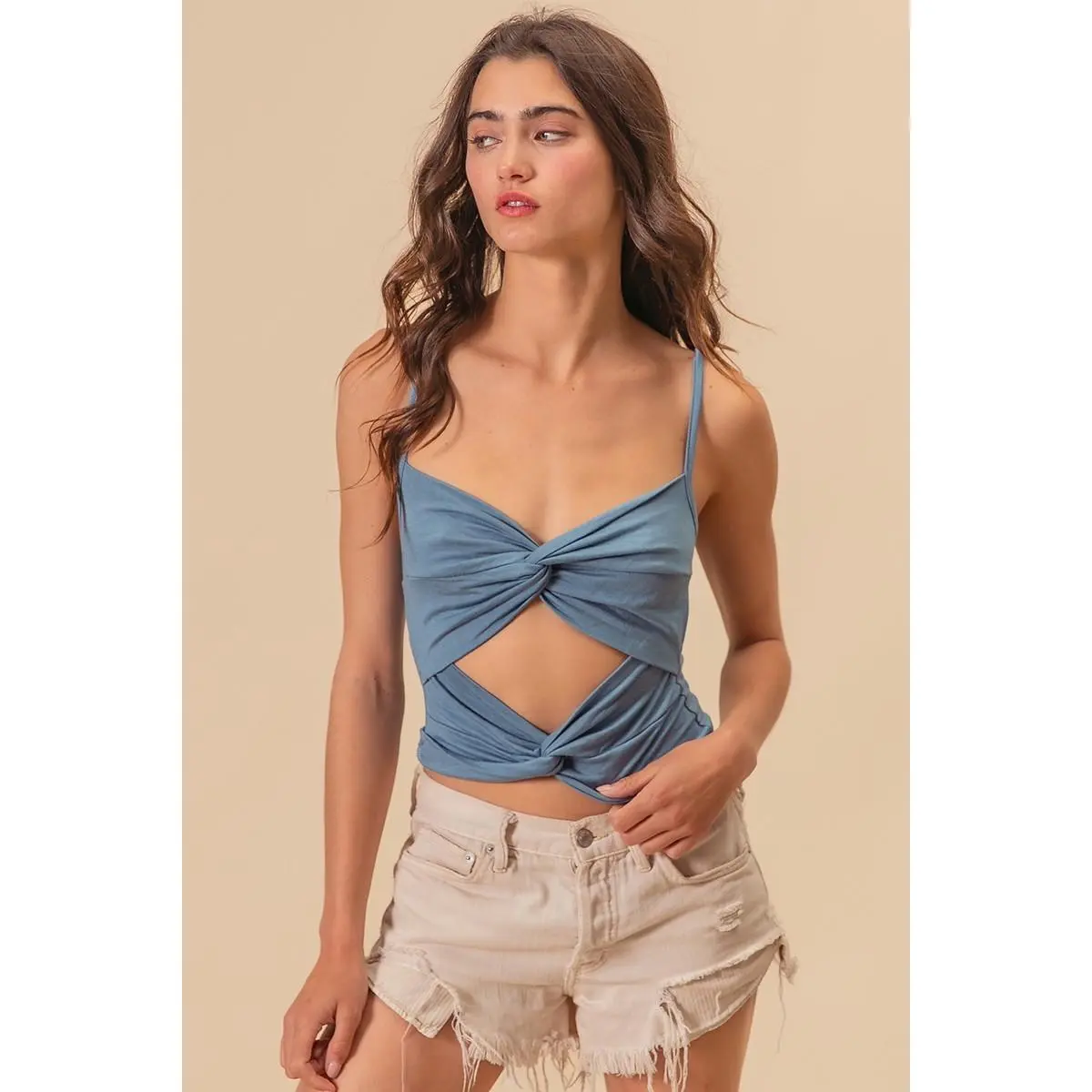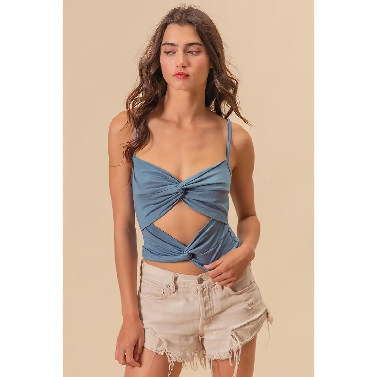 This cami top is made from soft and stretchy rayon span jersey knit fabric, ensuring a comfortable and flattering fit. The double twist front detail adds a trendy and eye-catching element to the design. Versatile and easy to style, this top can be dressed up or down for any occasion. Elevate your wardrobe with this chic and on-trend cami top today!