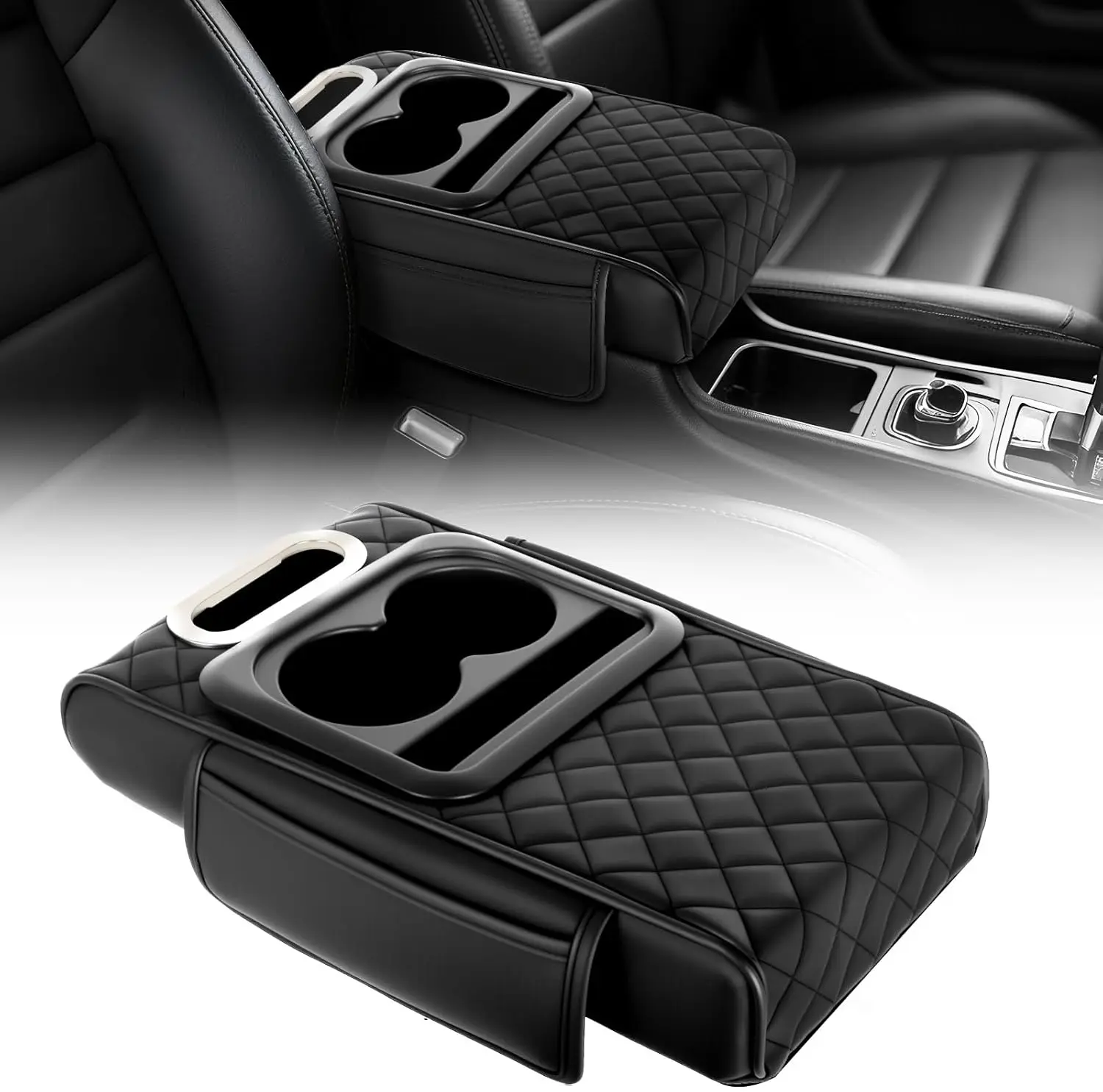 ·2.【PREMIUM MICROFIBER LEATHER MATERIAL】 - This car center console cover is made of quality microfiber leather material, soft and skin-friendly touch. Exquisite and fashionable diamond shaped stitching, every detail is in place. Inside the car center console cover is made of thickened memory foam, even after squeezing, it can slowly recover to its original shape.