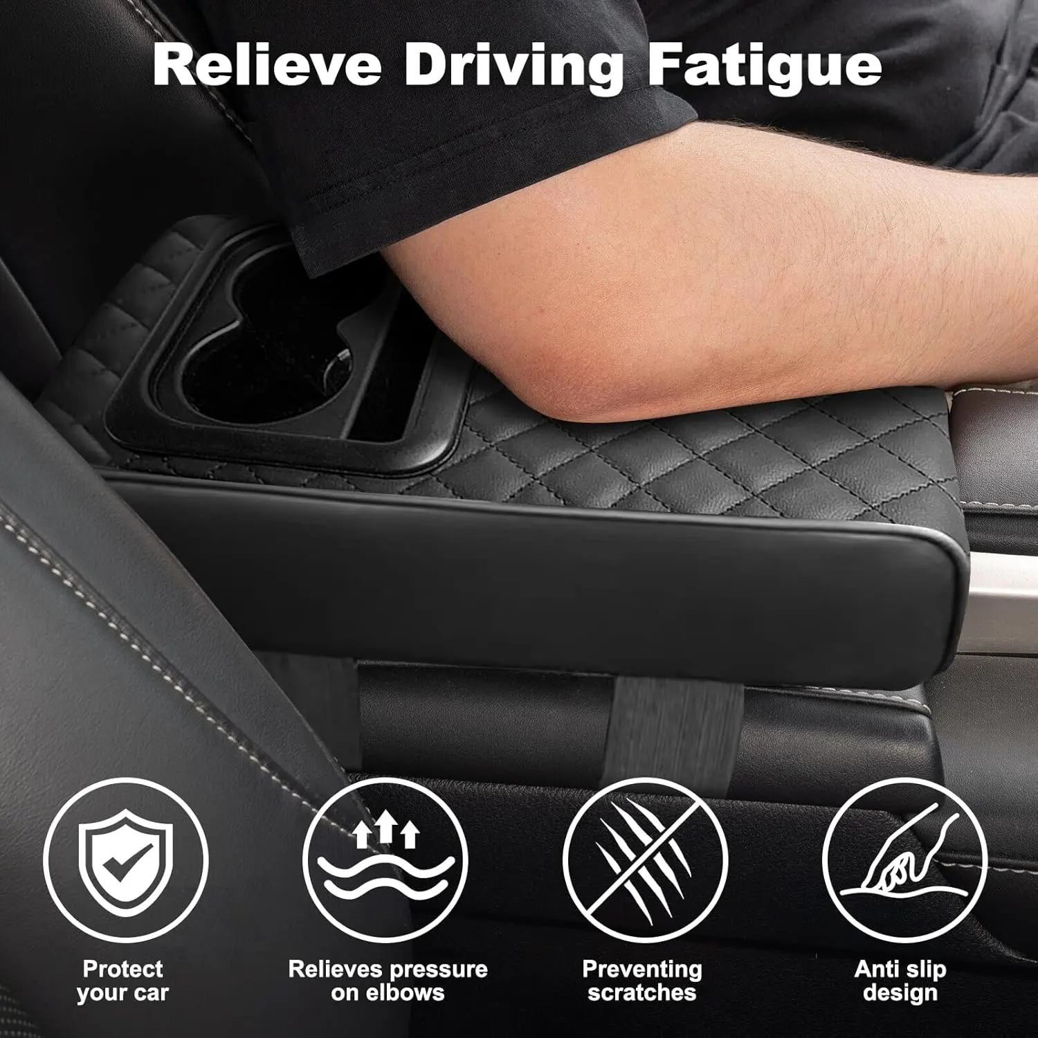 ·3.【RELIEVE DRIVING FATIGUE 】- The arm rest cover for car adopts ergonomic design, giving just the right amount of arm support, effectively dispersing elbow pressure and relieving driving fatigue. Protect your car's center console from getting dirty or scratched. Especially suitable for long time driving or long distance traveling, bringing you a new experience of relaxation and comfort!