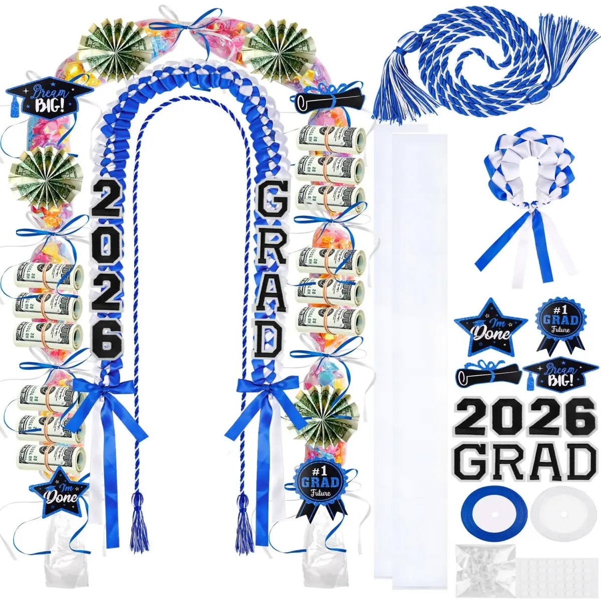 This 18-piece graduation leis set is specially designed for the Class of 2026, featuring a stylish double-layer ribbon candy lei style that creates a strong festive atmosphere for graduation ceremonies.
