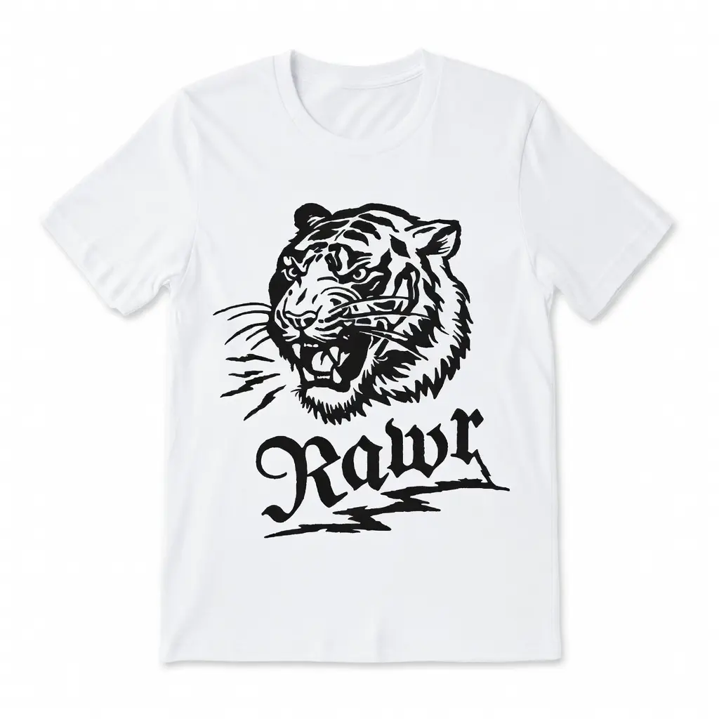 Vintage Roaring Tiger Graphic T-Shirt, Retro Wild Animal Short Sleeve Apparel, Old School Tattoo Style Graphic Tee, Aesthetic 90s Grunge & Traditional Art Gift Fashion Top, Viral Trendy Streetwear Tiger Illustration Statement Crew Neck