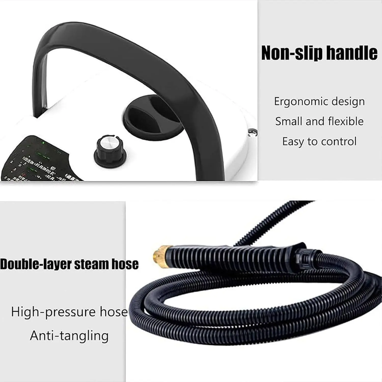 360º Chemical-Free Cleaning: 3BAR high-pressure steam penetrates crevices and corners. Features 7.2Ft/2.2m hose and 8.66in/22cm extended elbow nozzle for thorough cleaning of cars, furniture and kitchen appliances.