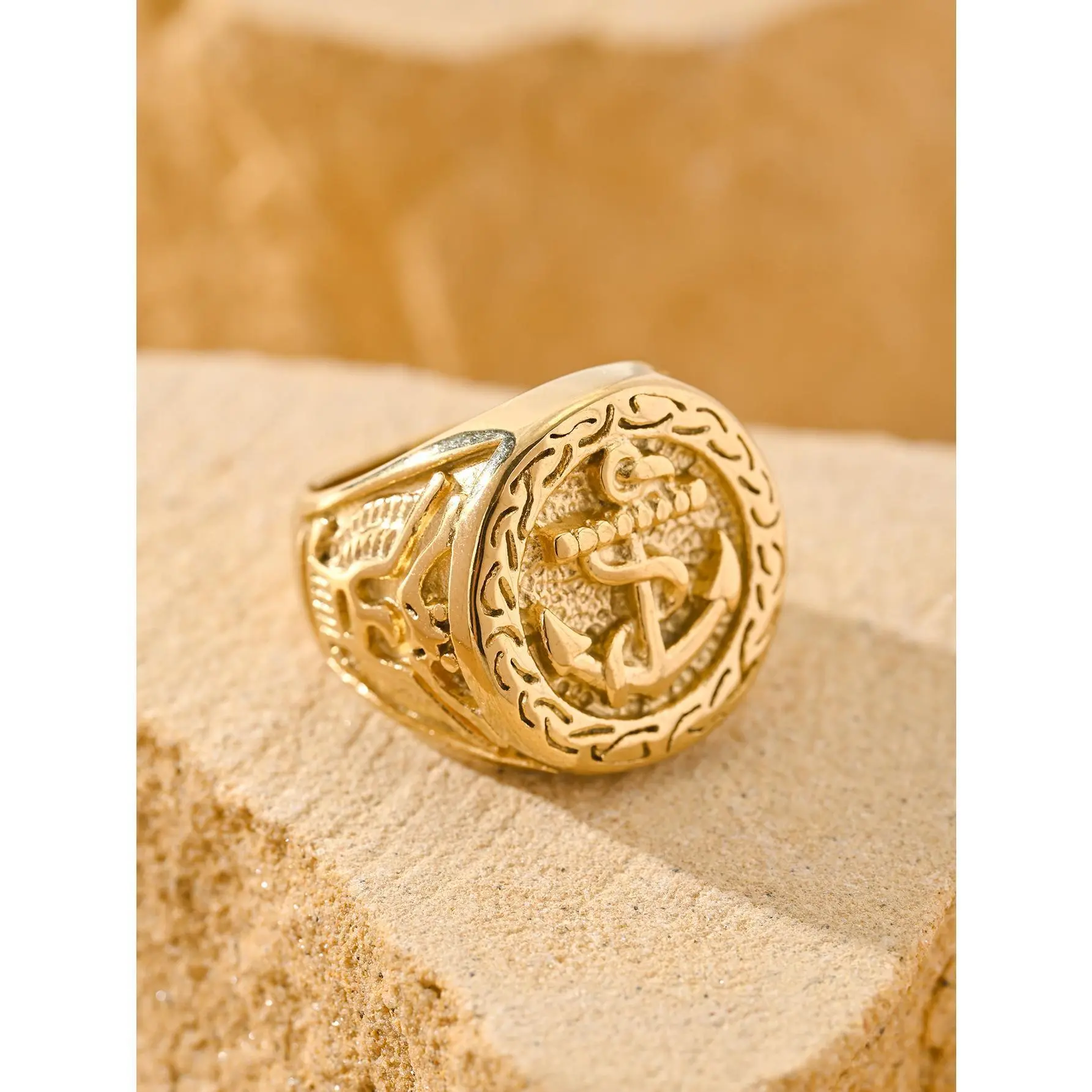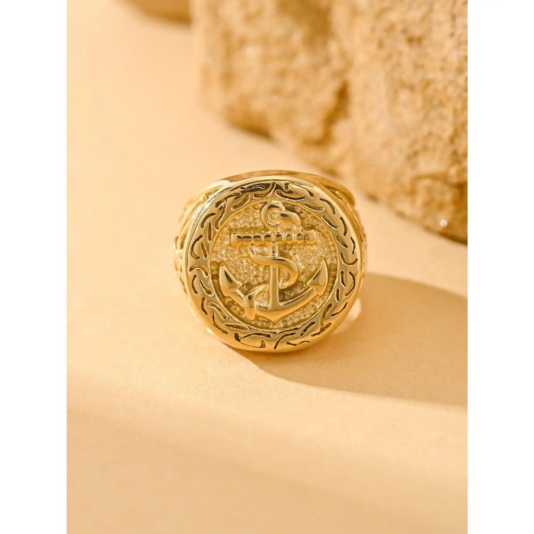 Luxury Anchor Signet Ring, Premium Unisex Band