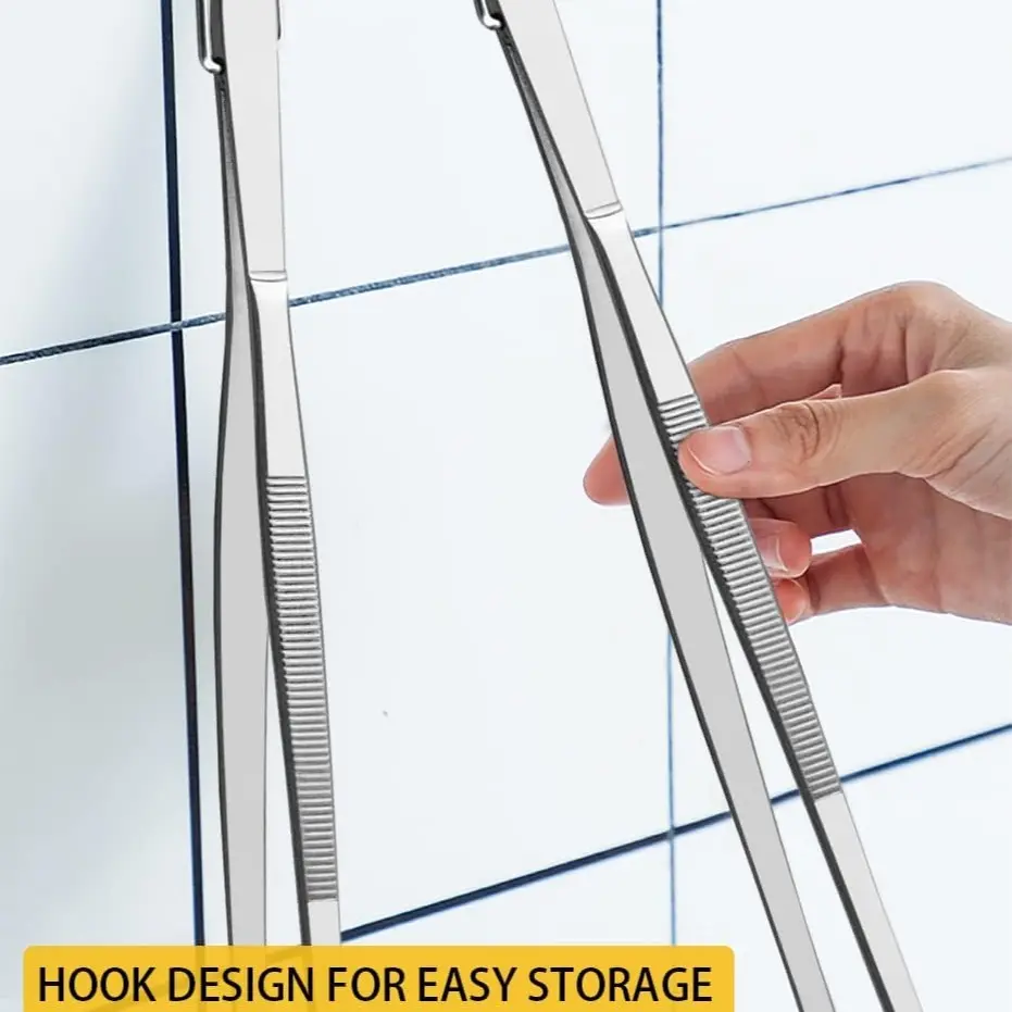 ·MULTI-PURPOSE USAGES - This tweezer tongs is great for kitchen, restaurants, buffets, weddings, parties and more. Perfect for cooking, roasting, grabbing small objects, pharmacy purpose, pulling out hair, electrical repairing, crafting, even the food tweezers can be used for feeding small animals, cleaning out a garden or fish tank, plant maintenance.