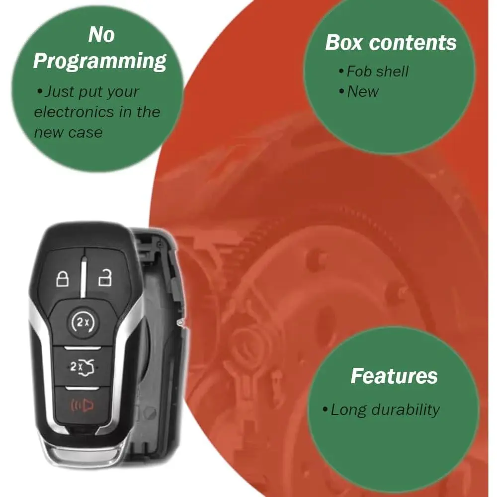 Features Repair yourself. Instead of ordering a new car key. With the replacement of your old key housing, most problems can be fixed. And your vehicle key appears like new again. No programming needed. Use the electronics in the new key case and the key works as usual. This Smart Key Case is compatible with: 2013-2017 Ford F-150 F-250 F-350 F-450 2015-2017 Ford Edge 2016-2017 Ford Explorer 2015-2017 Ford Mustang 2013 - 2016 Ford Fusion 2014 - 2016 Lincoln MKC 2016 - 2019 Lincoln MKX 2013 - 2016 Lincoln MKZ 2020 - 2020 Lincoln Nautilus