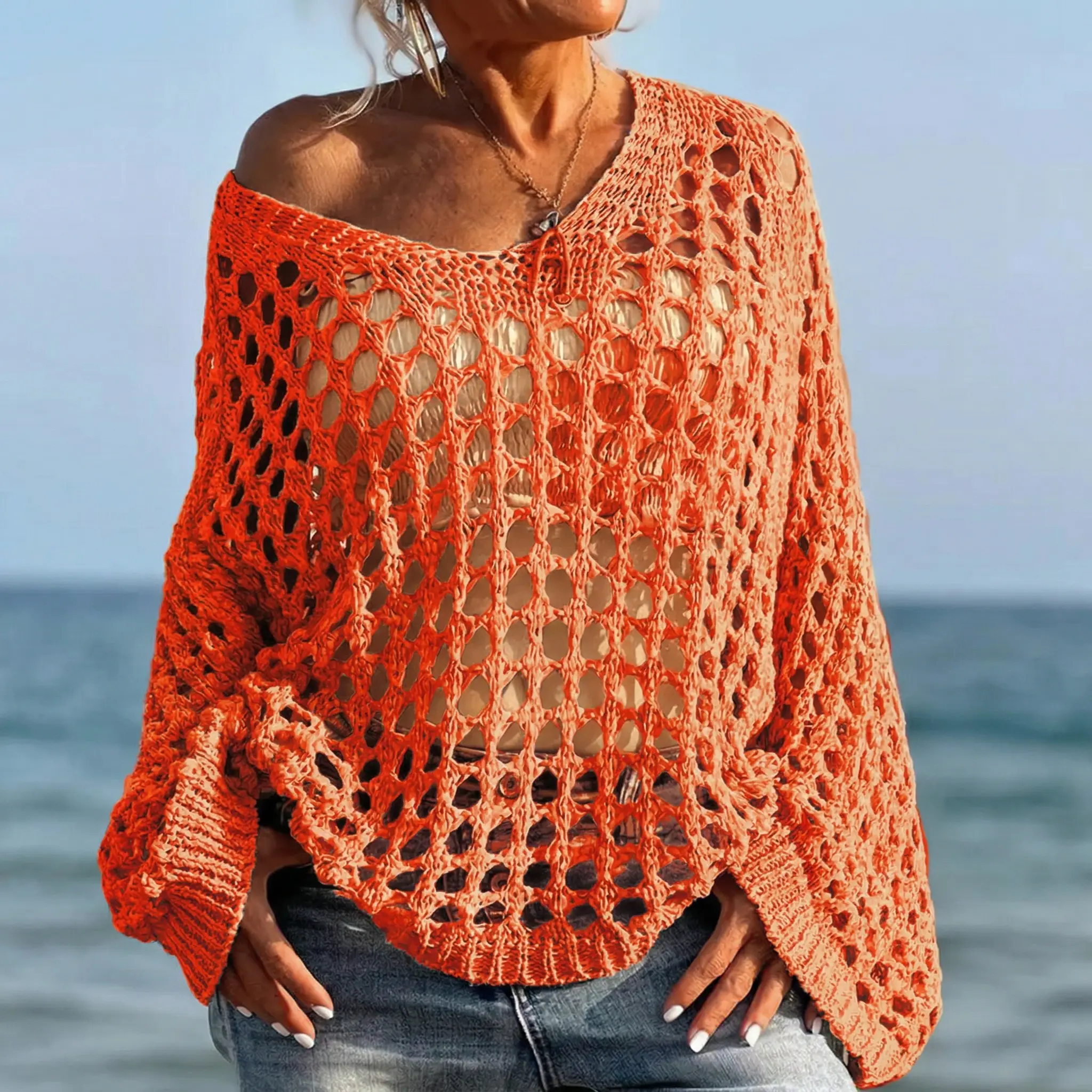 ·Endless Options: Wear off-the-shoulder with ripped jeans or as a beach cover-up.
