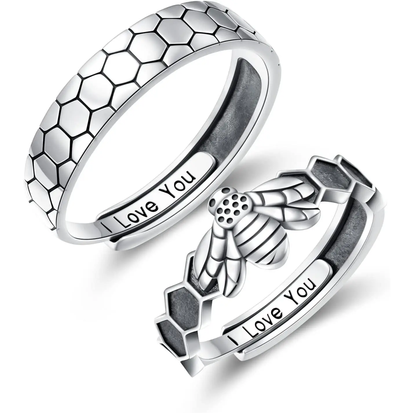 Couple's ring, 925 sterling silver couple's promise ring, romantic love couple's jewelry gift, adjustable engagement wedding ring, couple's gift, holiday gift, anniversary gift