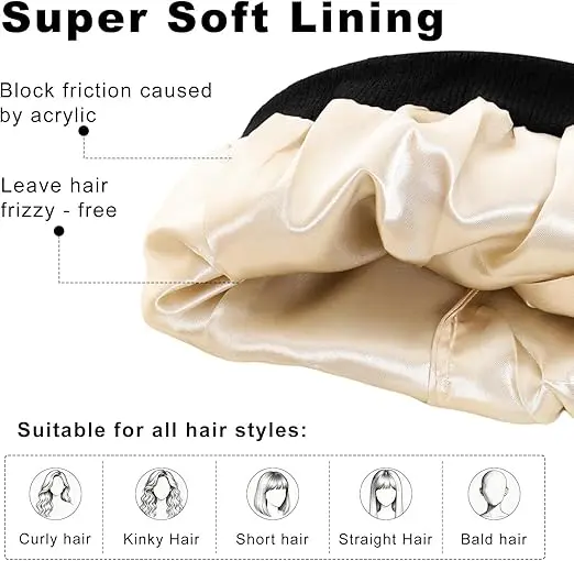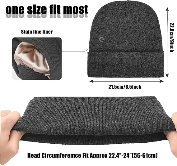 Satin Lined Winter Hat Winter Beanie Hats for Women Men Unisex, Soft Warm Knitted Cuffed Slouchy Beanie, Solid Color Casual Knit Hat, Fashion Slouchy Skull Cap for Fall & Winter Accessories