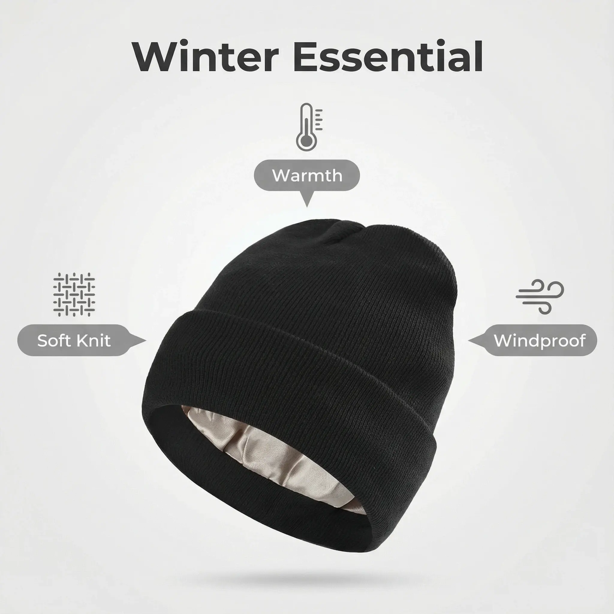 Stay stylish and warm with this satin-lined winter hat. It's the perfect blend of comfort and fashion.