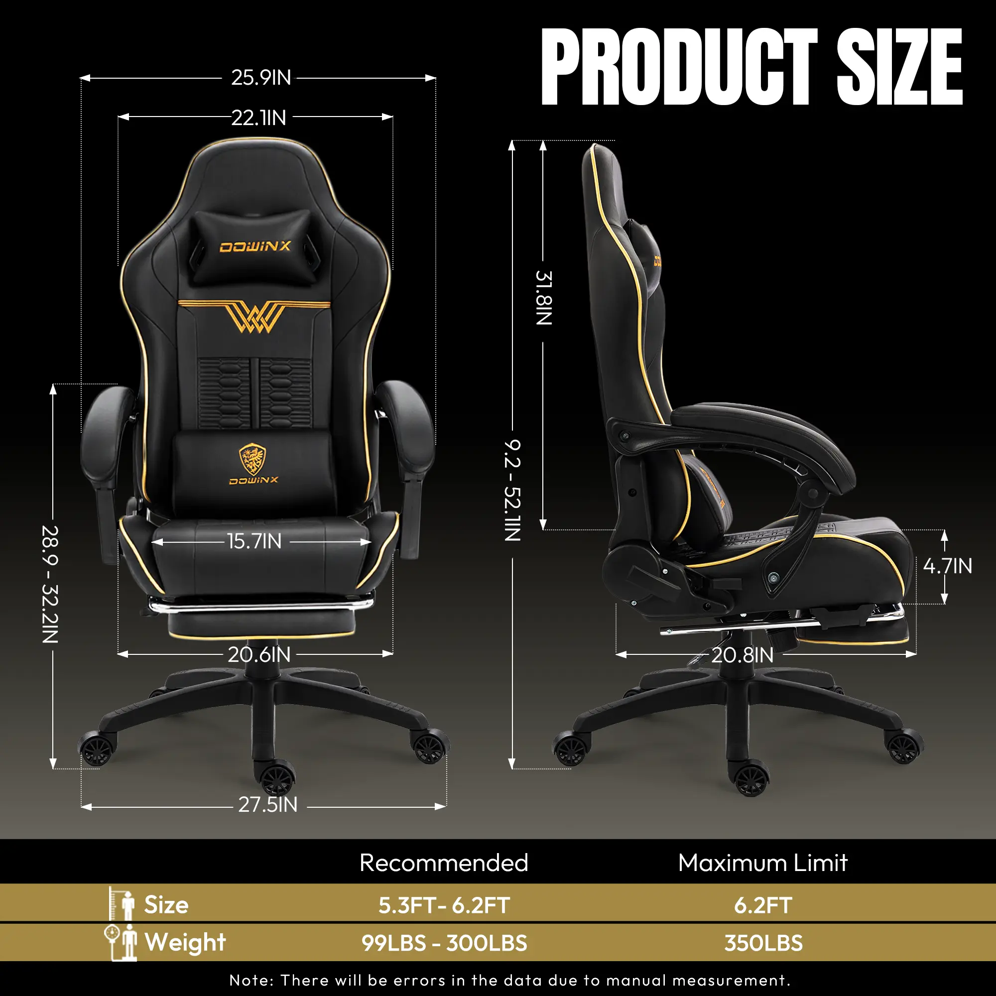 Dowinx Big and Tall Racing Style Gaming Chair 350LBS, Ergonomic Reclining Gamer Chair with Footrest & Massage Lumbar Support, Esports Design for Long Gaming or Work Sessions, Black
