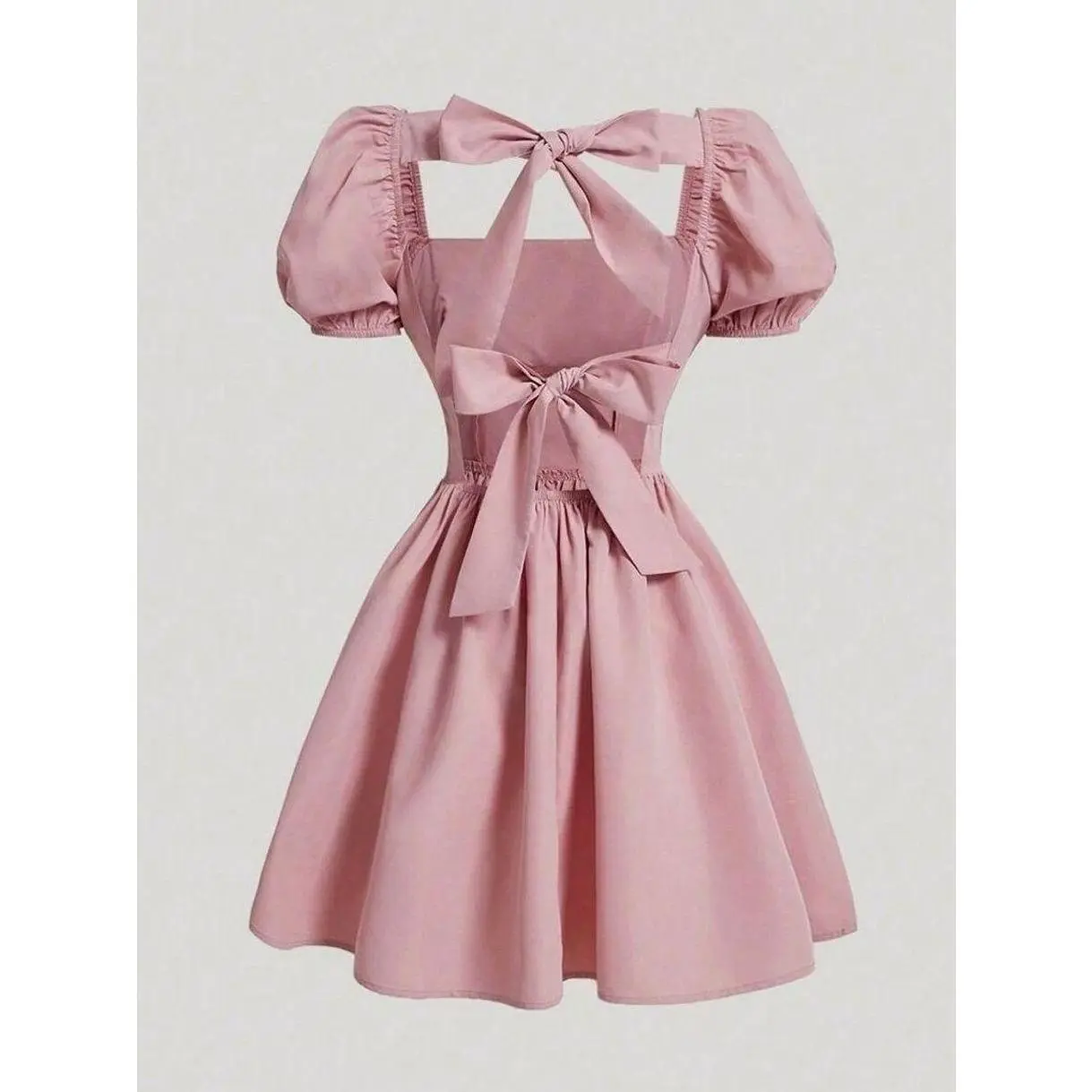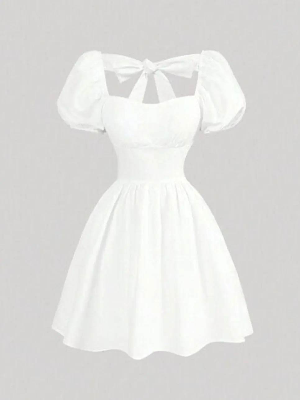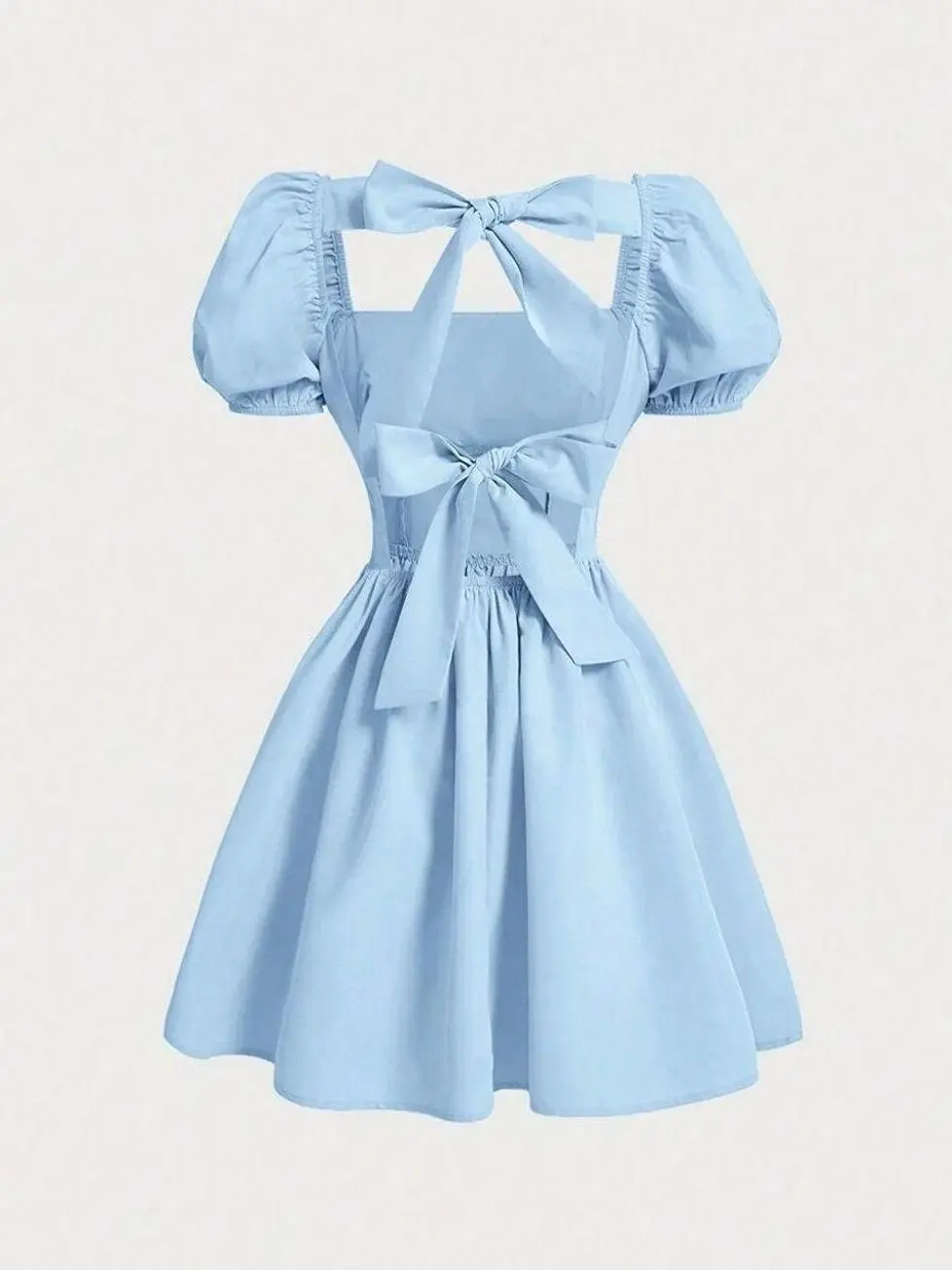 Women's Cute Solid Color Back Bow Tie Decor Dress Summer Vacation Outfit