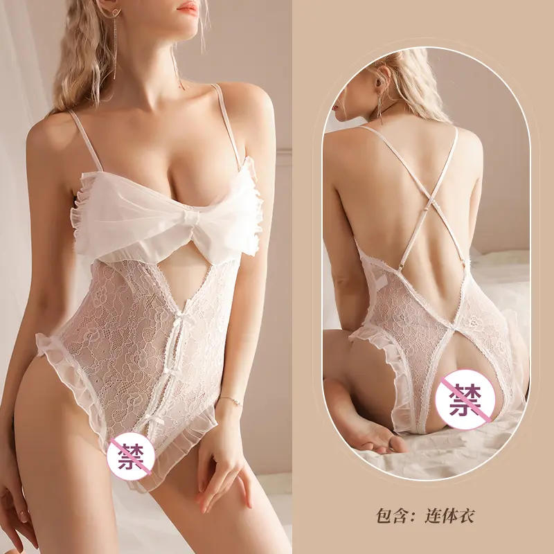 Sweet & Sultry White Polka Dot Mesh Teddy Lingerie with Bow Detail | Built-in Pads, Romantic Bridal Nightwear | TikTok Viral Trend