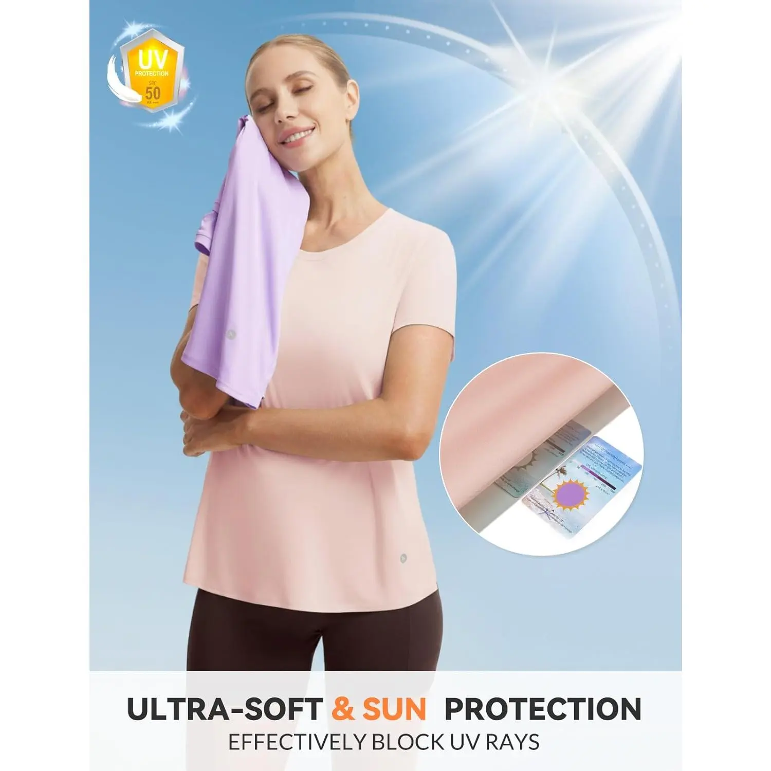 Baleaf Womens Short Sleeve Workout Tops Side Ruched Yoga Shirts UPF 50 Sun Protection Soft Athletic Tees for Outdoor Running