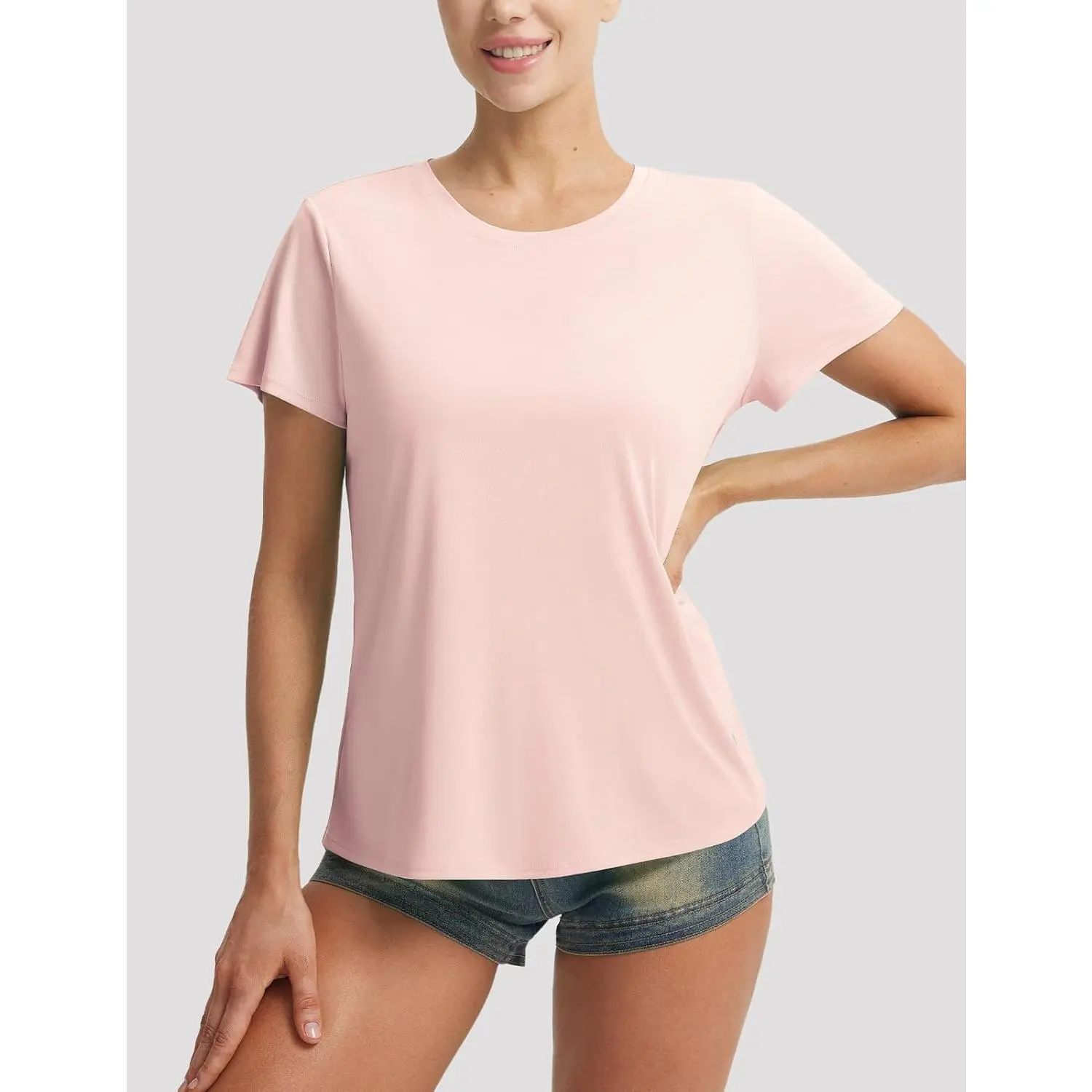 Baleaf Women's V Neck Half Sleeve Workout Top UPF 50+ Sun Protection Athletic Shirt Loose Fit with Curved Hem for Yoga and Running