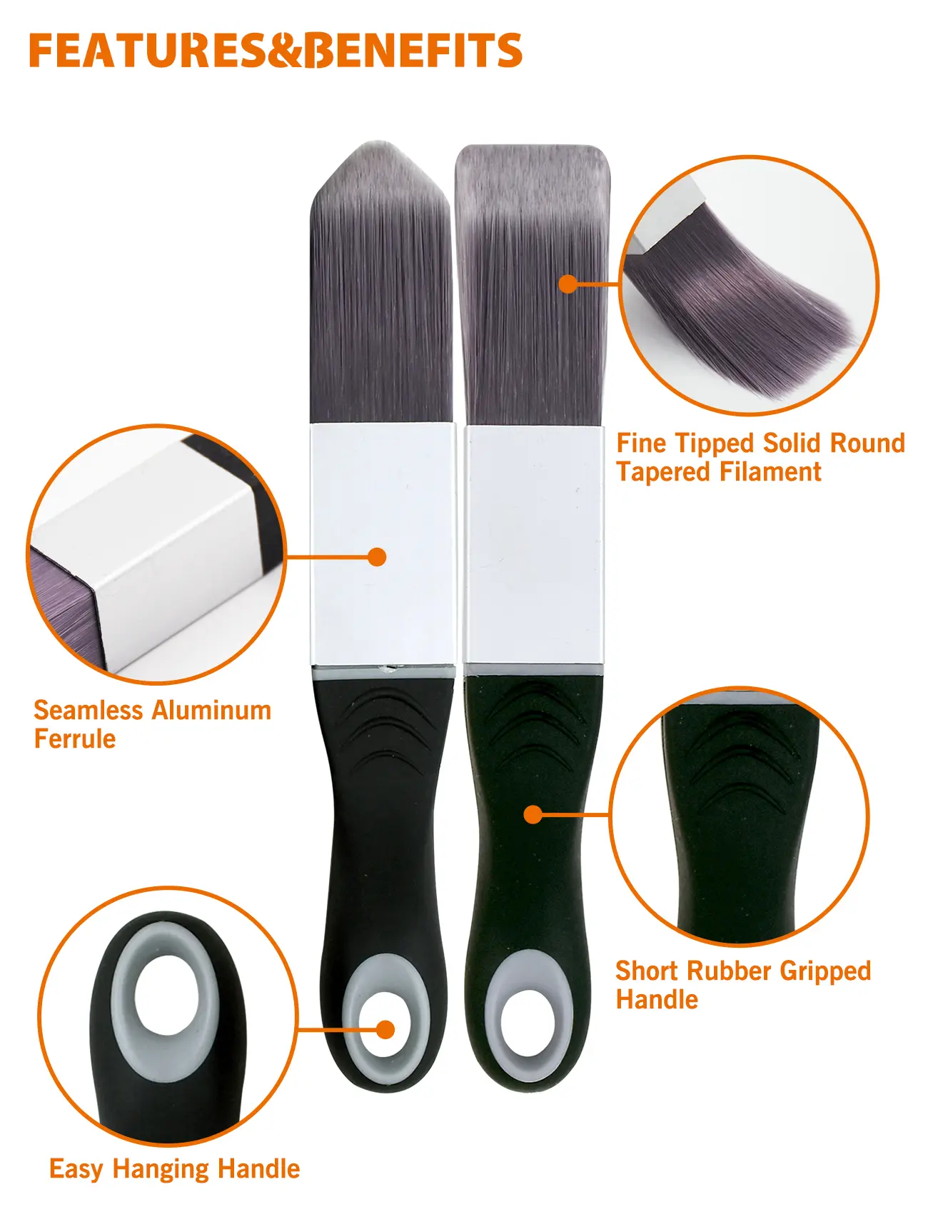 ·EDGING PAINT BRUSH SET: Detail Pro 2pc seamless aluminum ferrule perfect for trim and cut in
