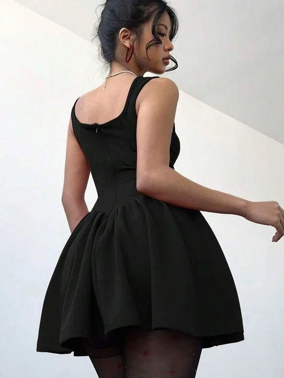 Women's Solid Color Bow Decor Back Sleeveless Mini Dress