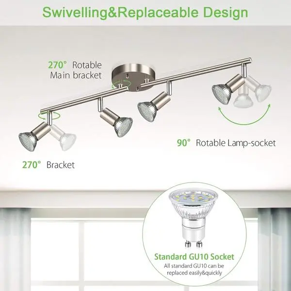 ·Energy Saving: Includes 4 x 4 W GU10 led bulbs (not dimmable), 400 lumen light output, 5000 K daylight white 85 CRI, which produce a more accurate color rendering of the objects around it
