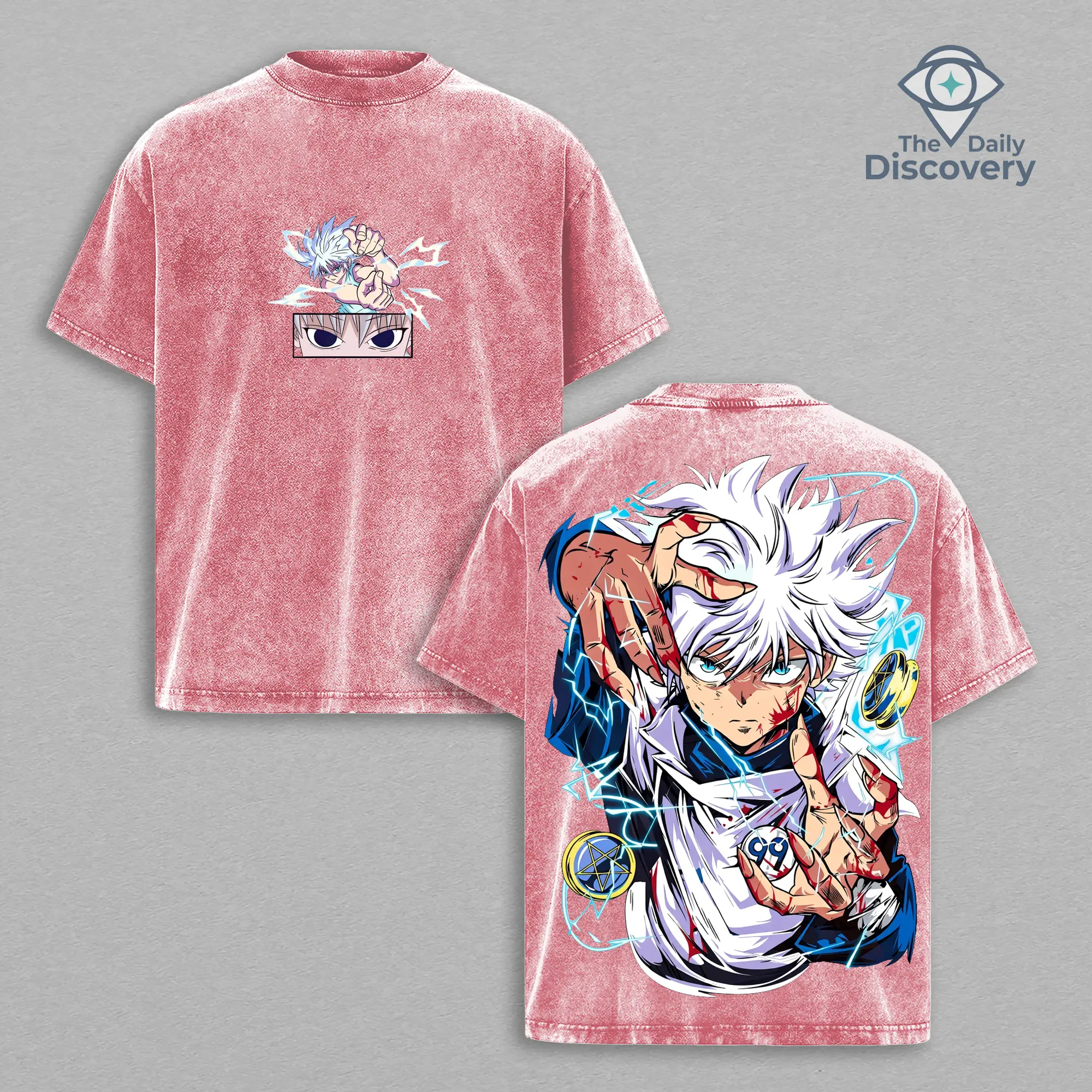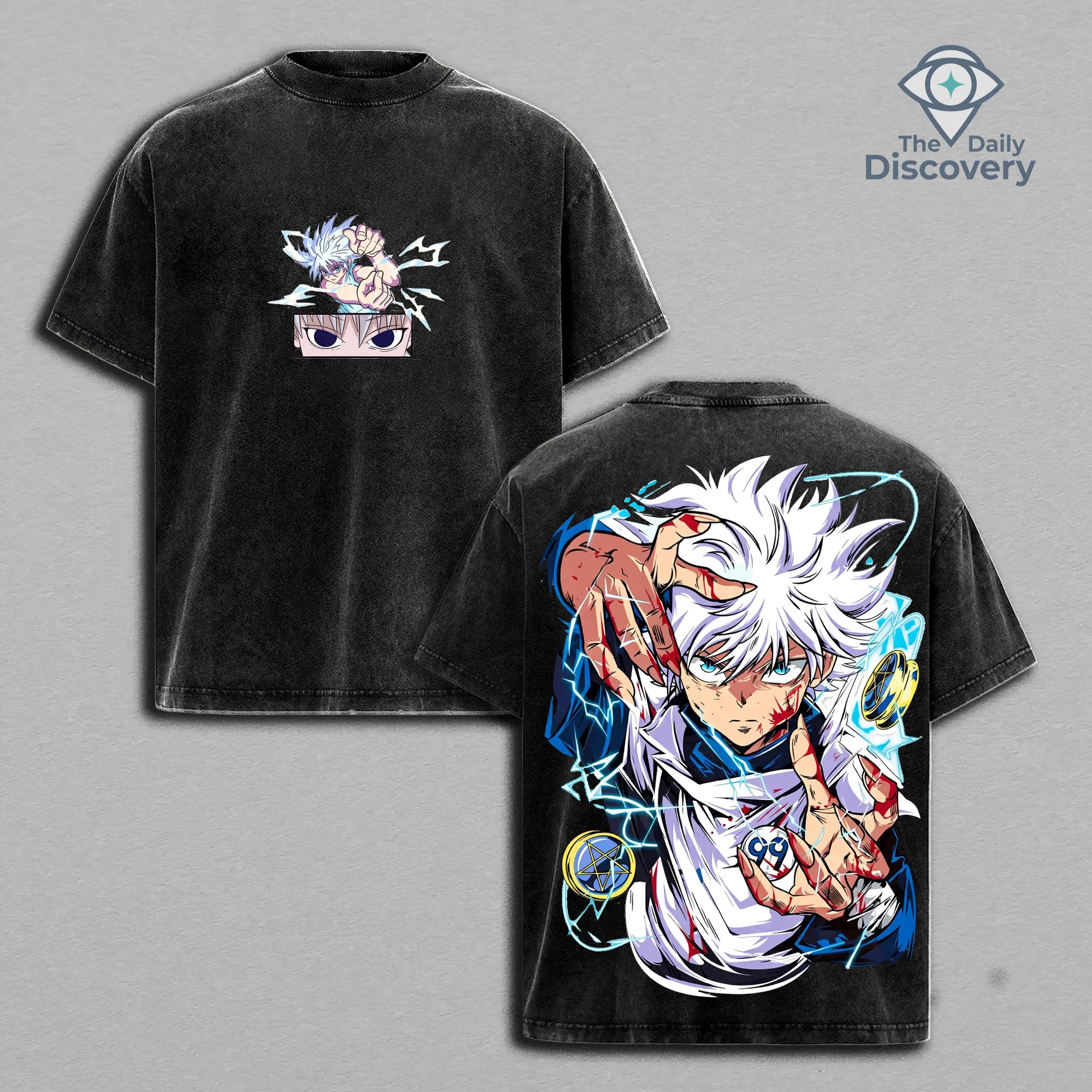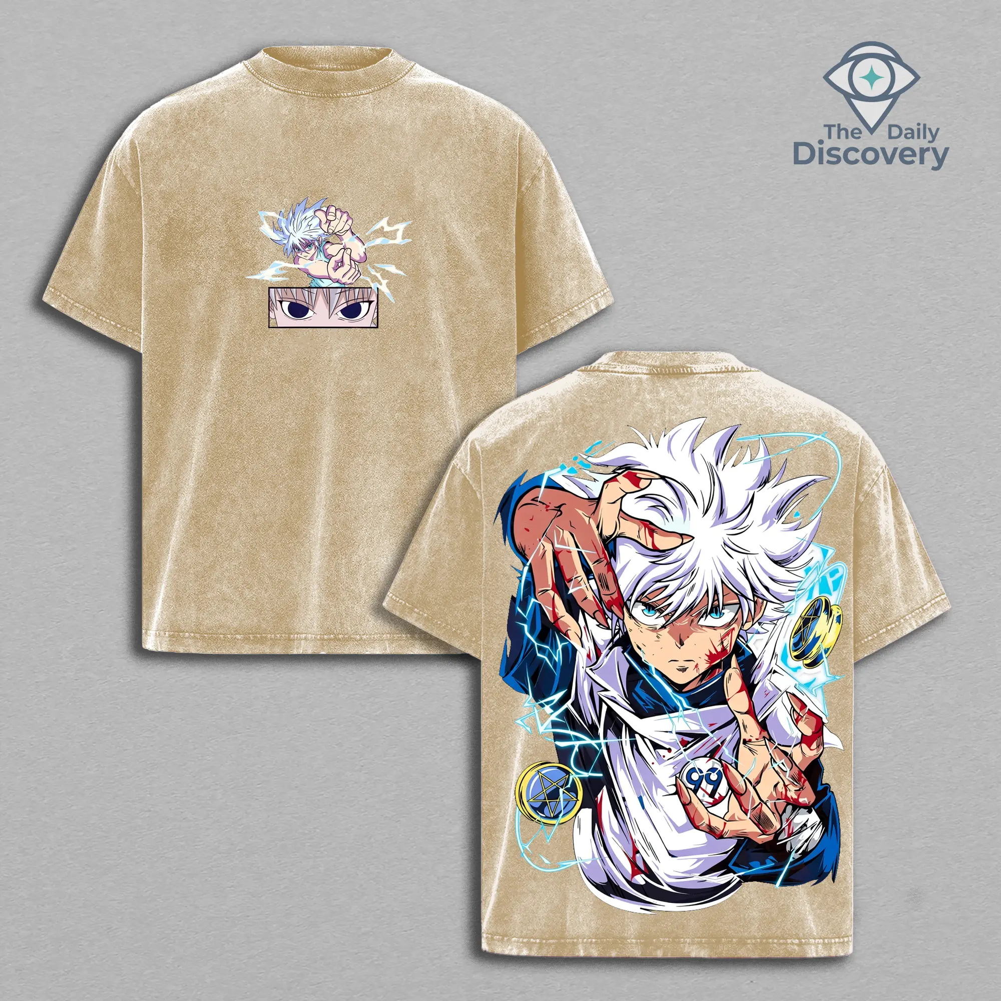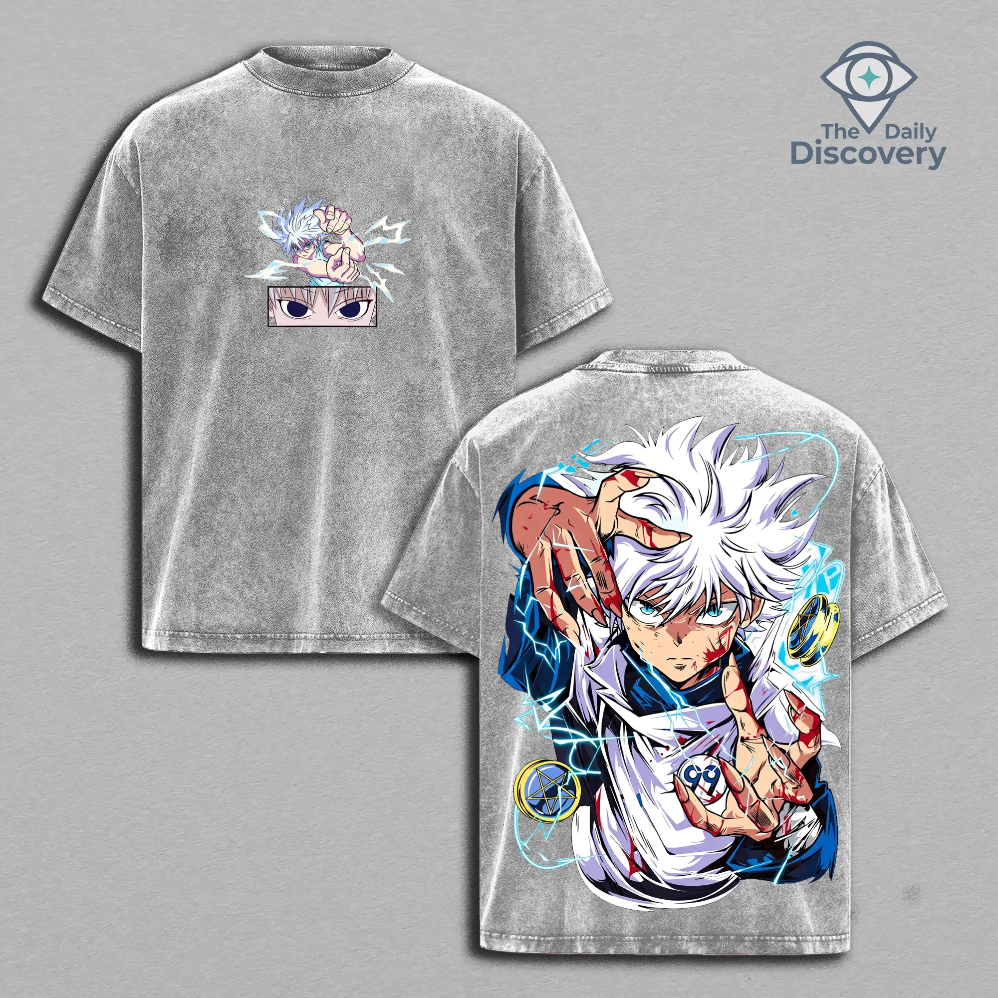 Limited Killua Zoldyck T-Shirt Hunter x Hunter Graphic Anime Tee Oversized Acid Washed Soft Cotton Shirt Anime Streetwear Casual Menswear Unisex Summer Clothing Gift for Anime Fans