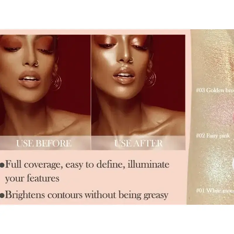 ✨ No Grease, No MessUltra-fine, buildable shimmer with a smooth, non-greasy finish.Stays put all day and night, no chunky fallout, just a luminous, lit-from-within radiance.