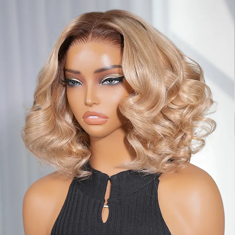 The 100% human hair construction ensures durability and comfort. The champagne blonde shade complements various skin tones. Experience the ease of wearing a wig with Megalook. Perfect for those looking for a natural and effortless style.