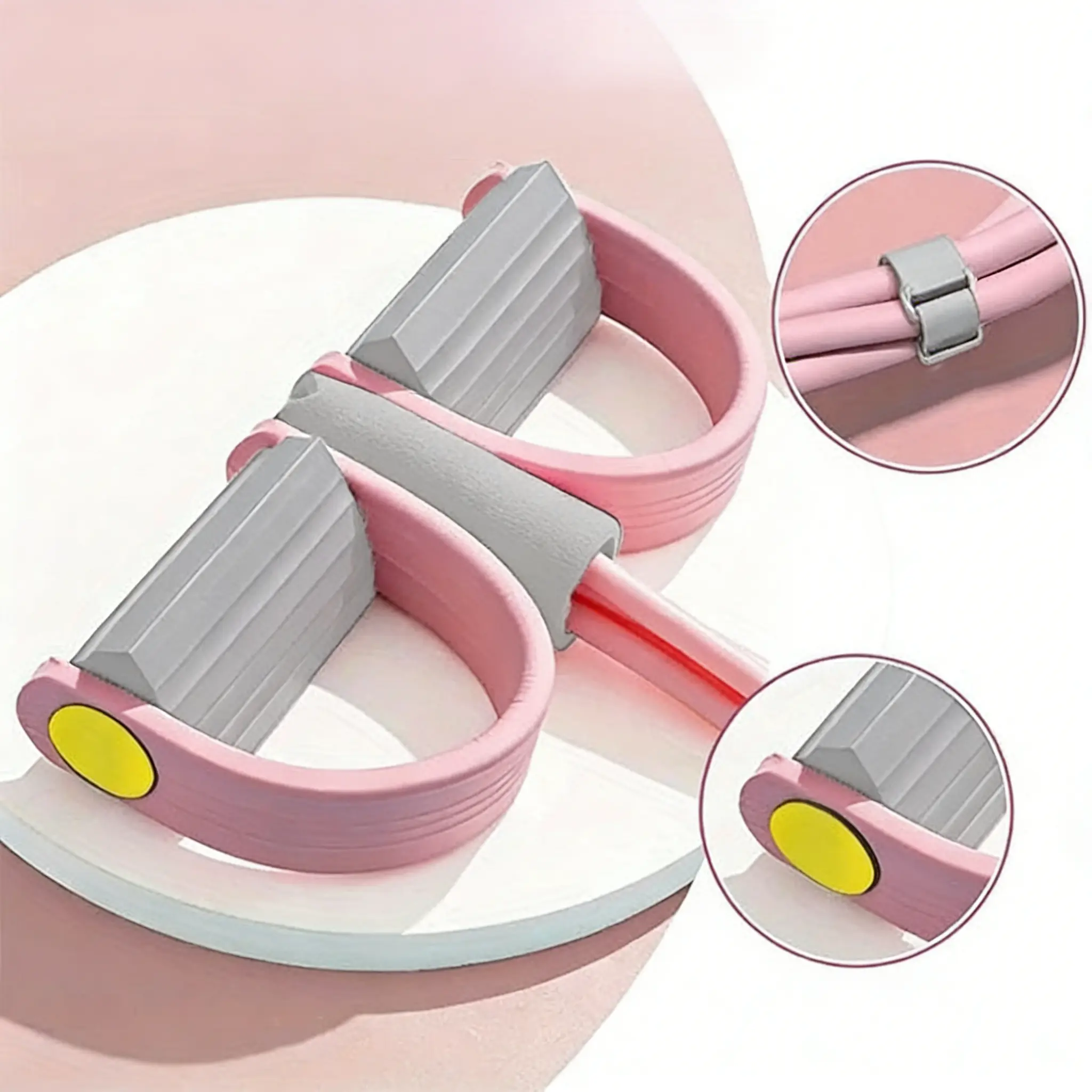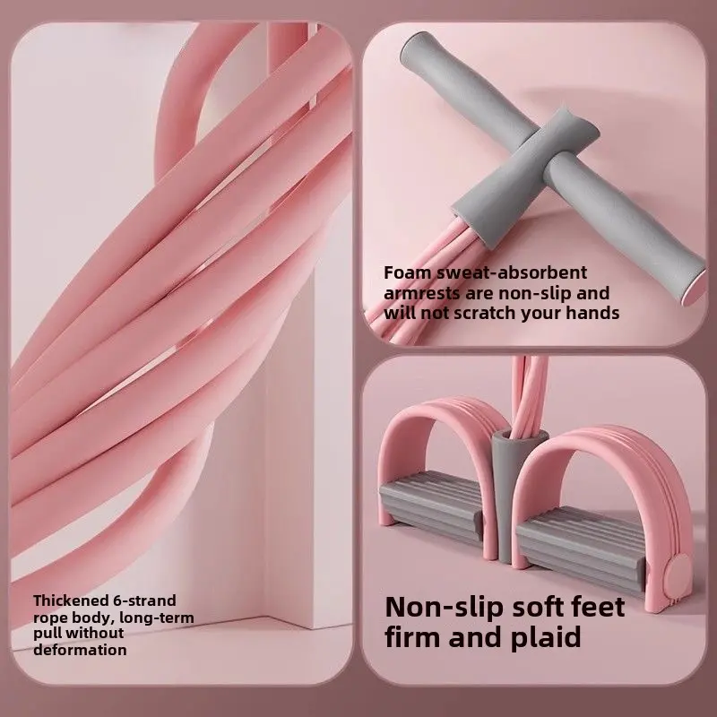 This Pedal Resistance Fitness Rope Set is perfect for enhancing your workout routine. The set features a unique design with a pink and gray color scheme. It includes a handle and two pedal-like structures, ideal for resistance training. The design allows for versatile exercises, catering to various fitness levels.