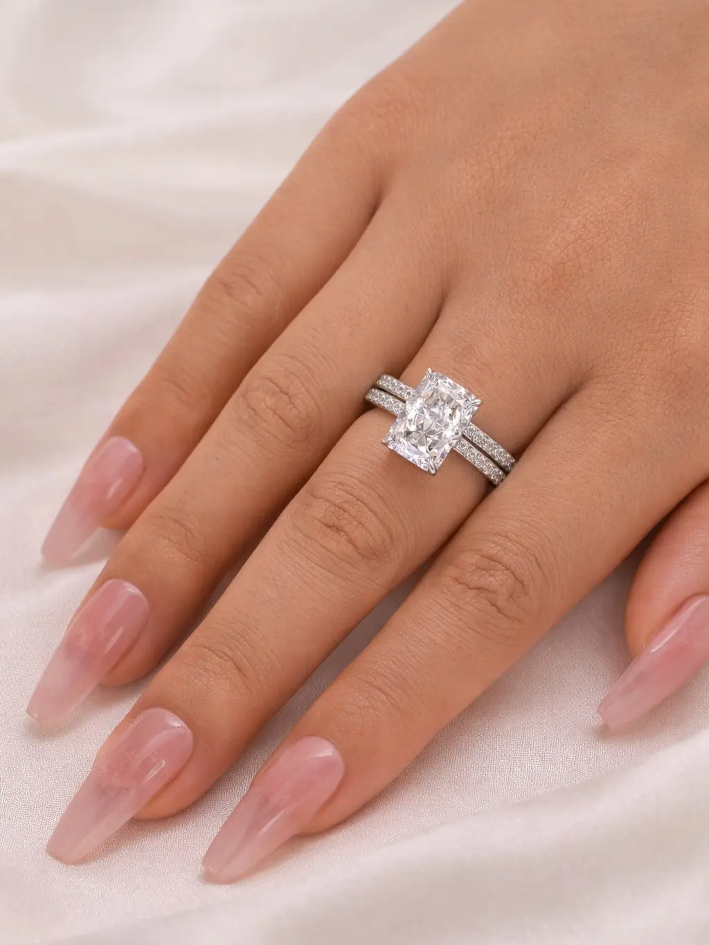 Absolutely beautiful!! I love this ring set! For it to be cubic zirconia, it looks so real. It’s got a lot of shine & the set is perfect size. Not to big or lose. Plus I love how they send a ring sizer/adjuster with the rings along with a cute gift bag, cleaning cloth & packaging was great!!