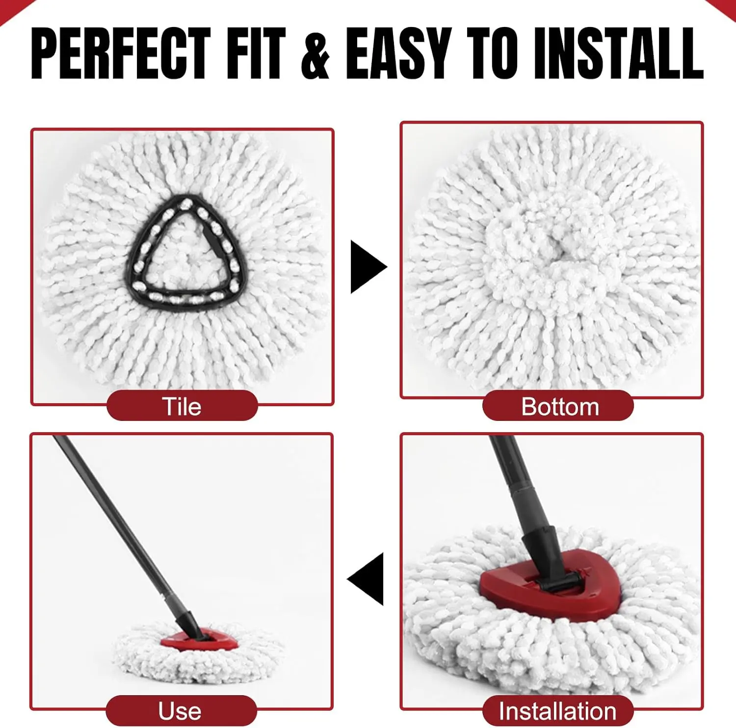 【Perfect Fit for Triangle Spin Mop】 With a simple snap-fit installation, Our special design makes it more stable for you during installation and cleaning, Please note that the mop head is incompatible with the 2-can system and perfectly matches the 1-can mop system.