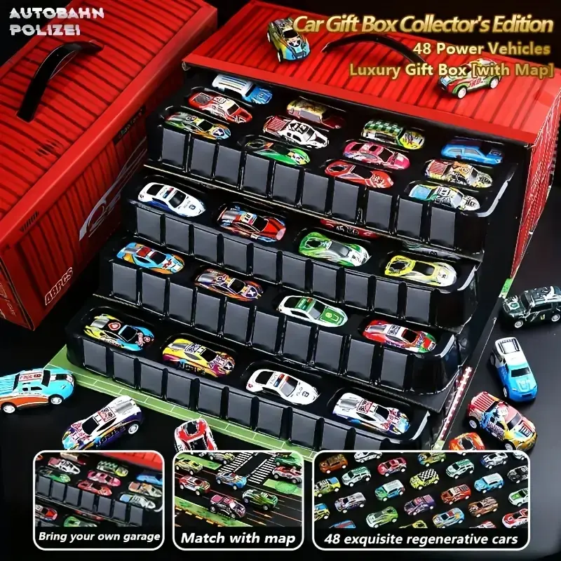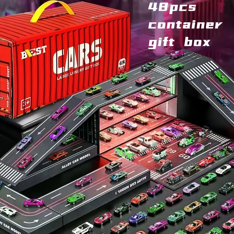 48-Piece Realistic Racing Car Set (Gift Box Collection) - Includes Map, Parking Lot & 4-Tier Garage, Interactive Toy, Black Friday Deal: Ideal Holiday/Kids' Day Gift
