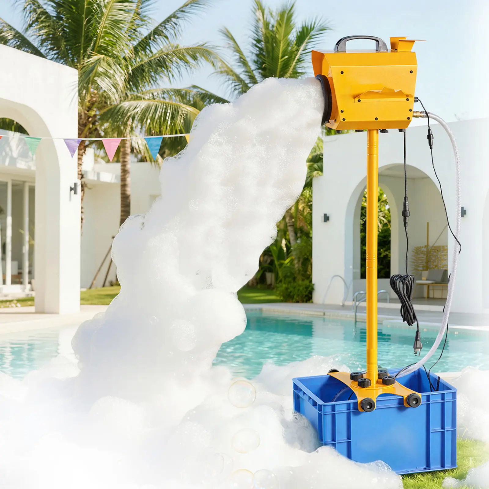 Downward Foam Design: A non-spray foam system allows foam to flow downward naturally instead of dispersing in all directions. An industrial-grade fan supports steady airflow to create light, fluffy, and lasting foam while minimizing direct airflow toward faces. Our foam machine is a popular choice for family parties and children's activities