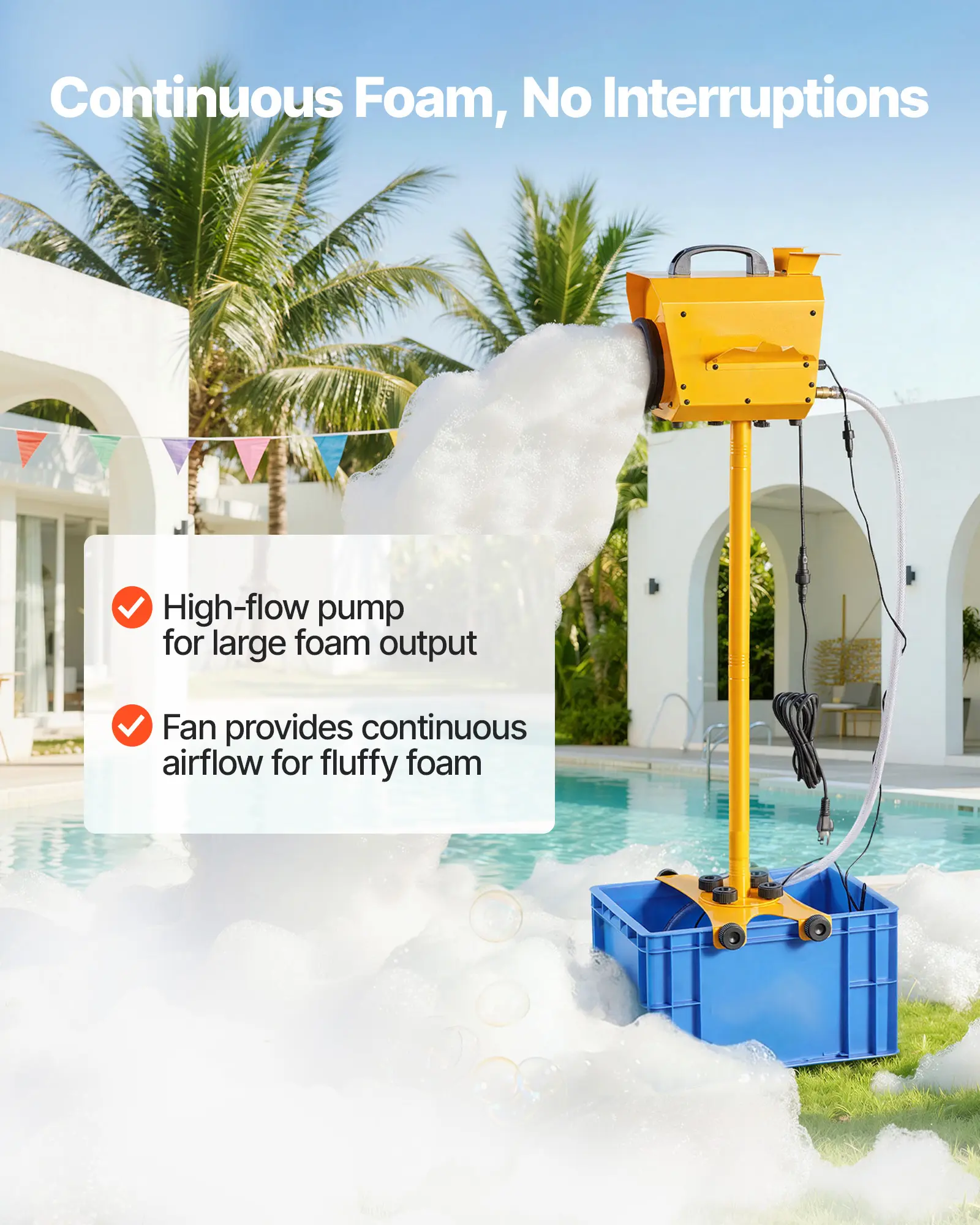 More Time Playing: The built-in 21QT/20L water tank allows long periods of continuous foam output after one preparation. This foam machine for party suits backyard foam parties, summer celebrations, and family gatherings, helping reduce refill downtime while saving time and effort during the event