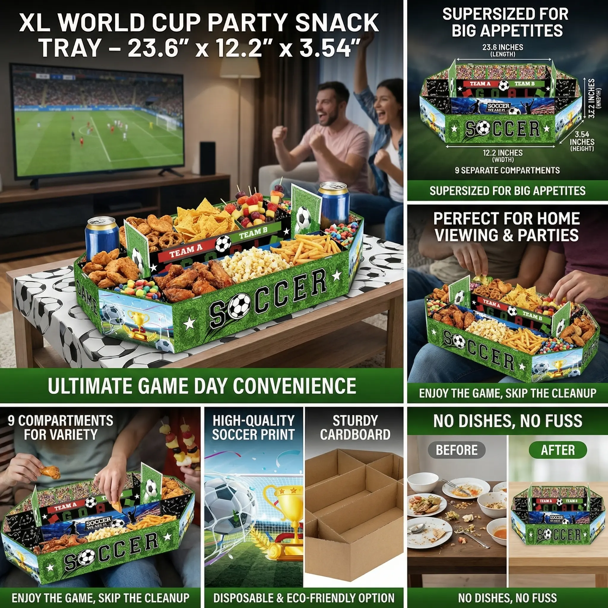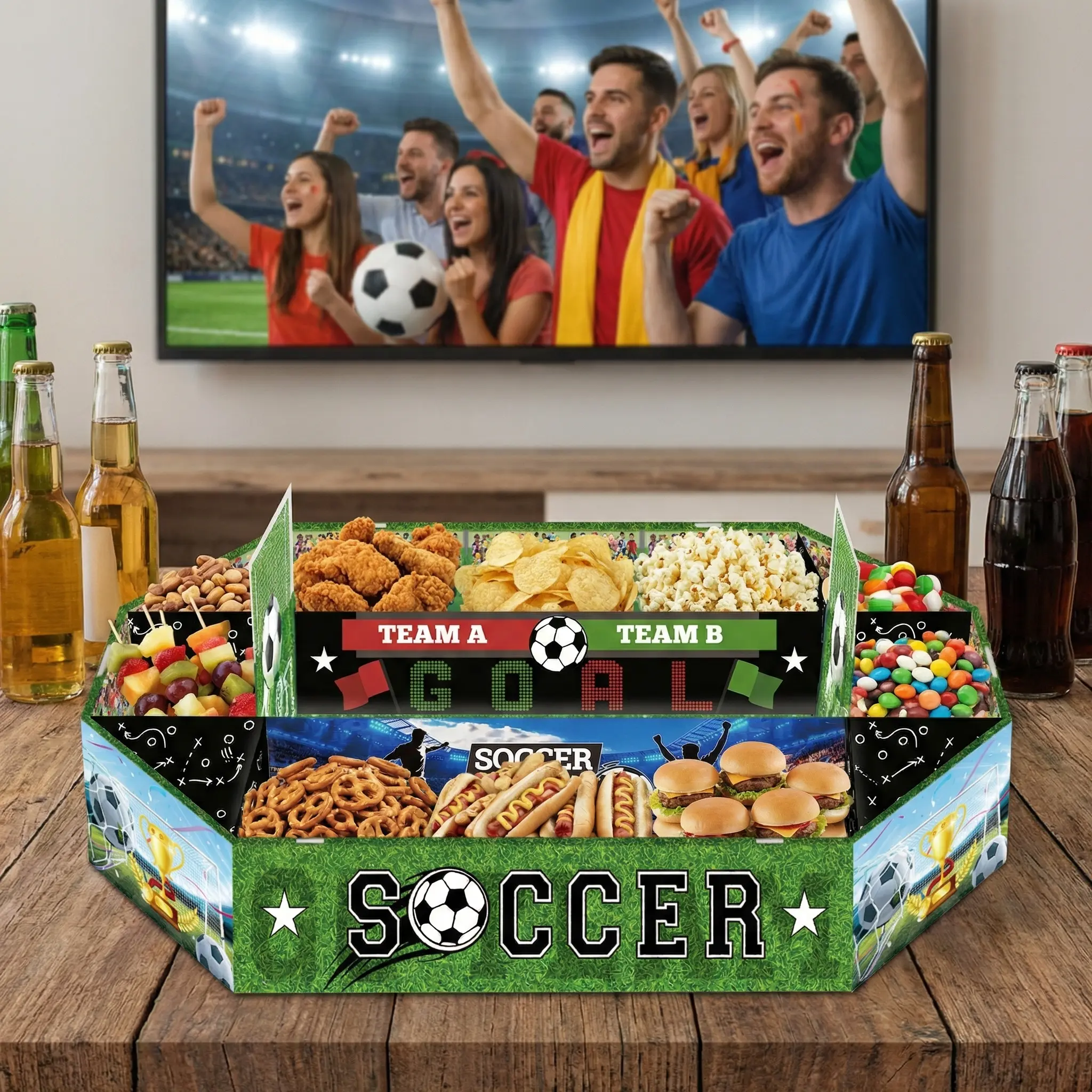 ·Set the festive mood with this unique snack tray. It's ideal for parties where you want to add a touch of excitement. The "Soccer Field" theme makes it a standout piece. 🎉
