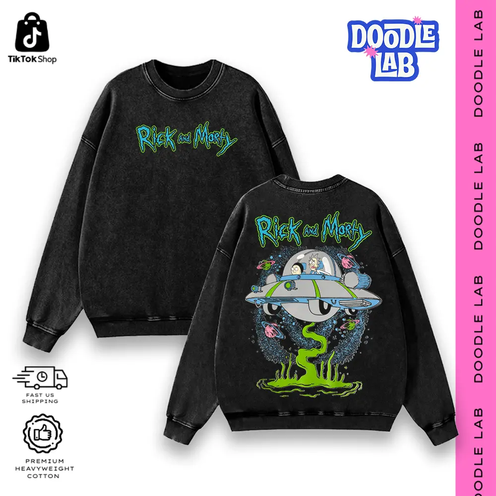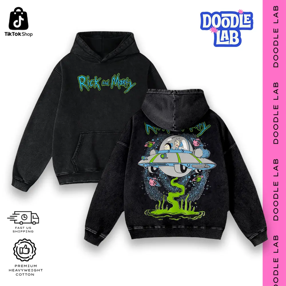 Rick and Morty Graphic Tees • Hoodie Streetwear • Vintage Oversized Acid Wash • Trippy Sci-Fi Spaceship Merch • Heavyweight Menswear Comfort Cotton