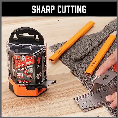 Wide application: All-purpose utility knife replacement blades are great for cutting a variety of materials, like cardboard, leather, carpet, drywall, sheetrock, linoleum, rope, soft metal, pipe, and paper, and suitable for most DIY projects.