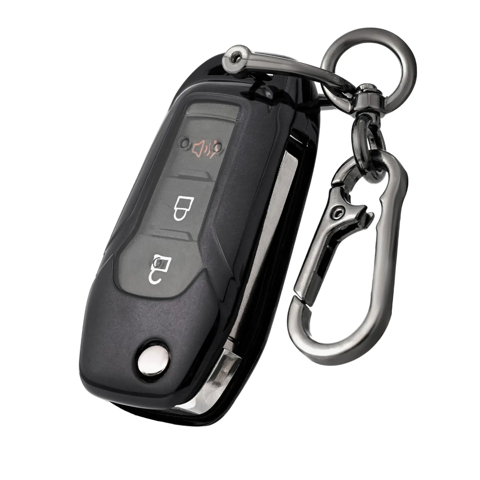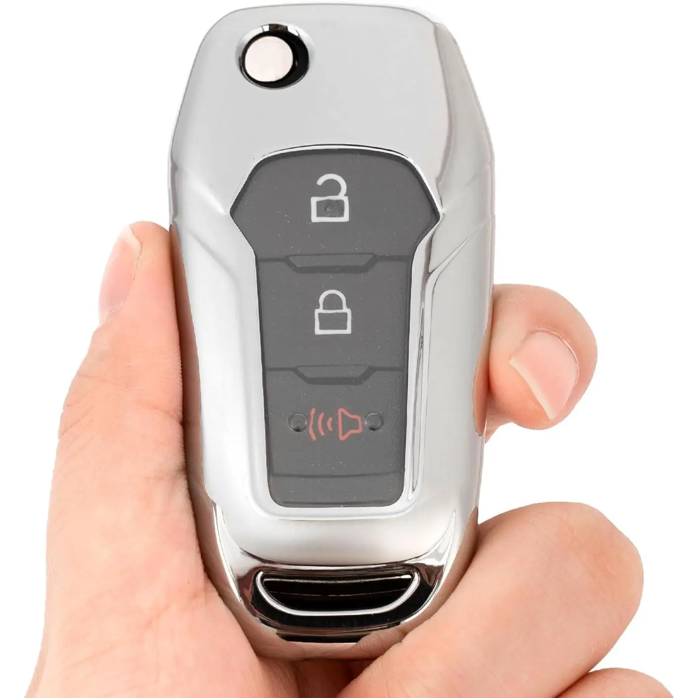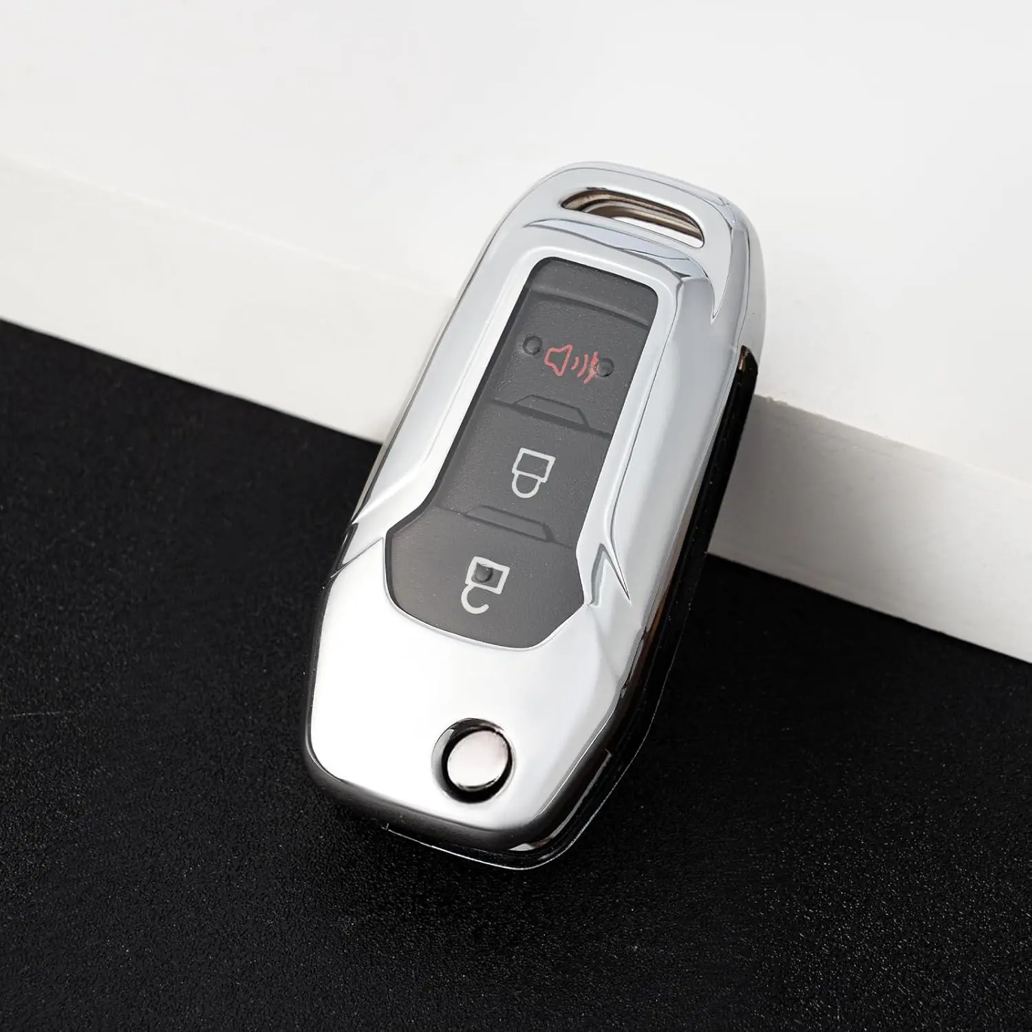 Key fob Cover for ford with Keychain, Soft TPU Car Key Cover Case for Ford Bronco F-150 Escape Explorer Expedition F-250 F-350 F-350 Ranger Ecosport 2015-2022 Accessories(Silvery)