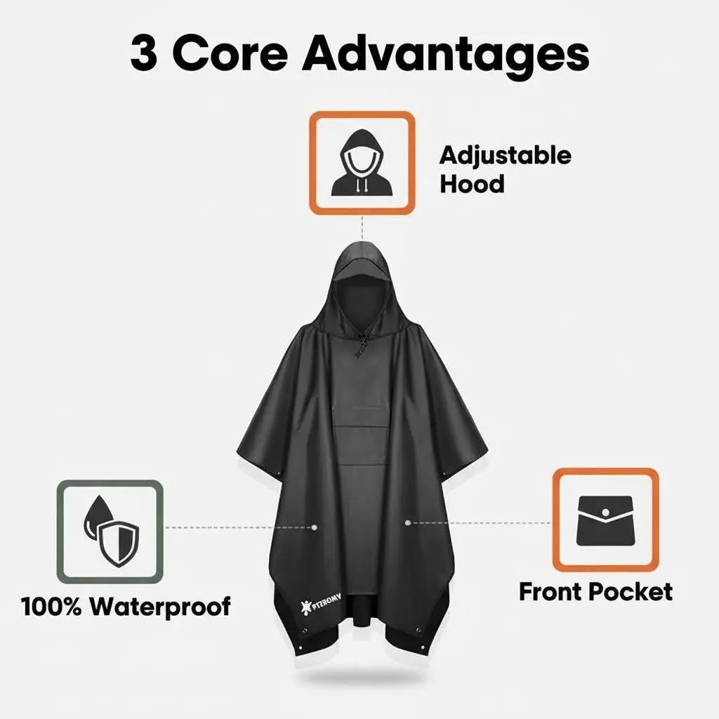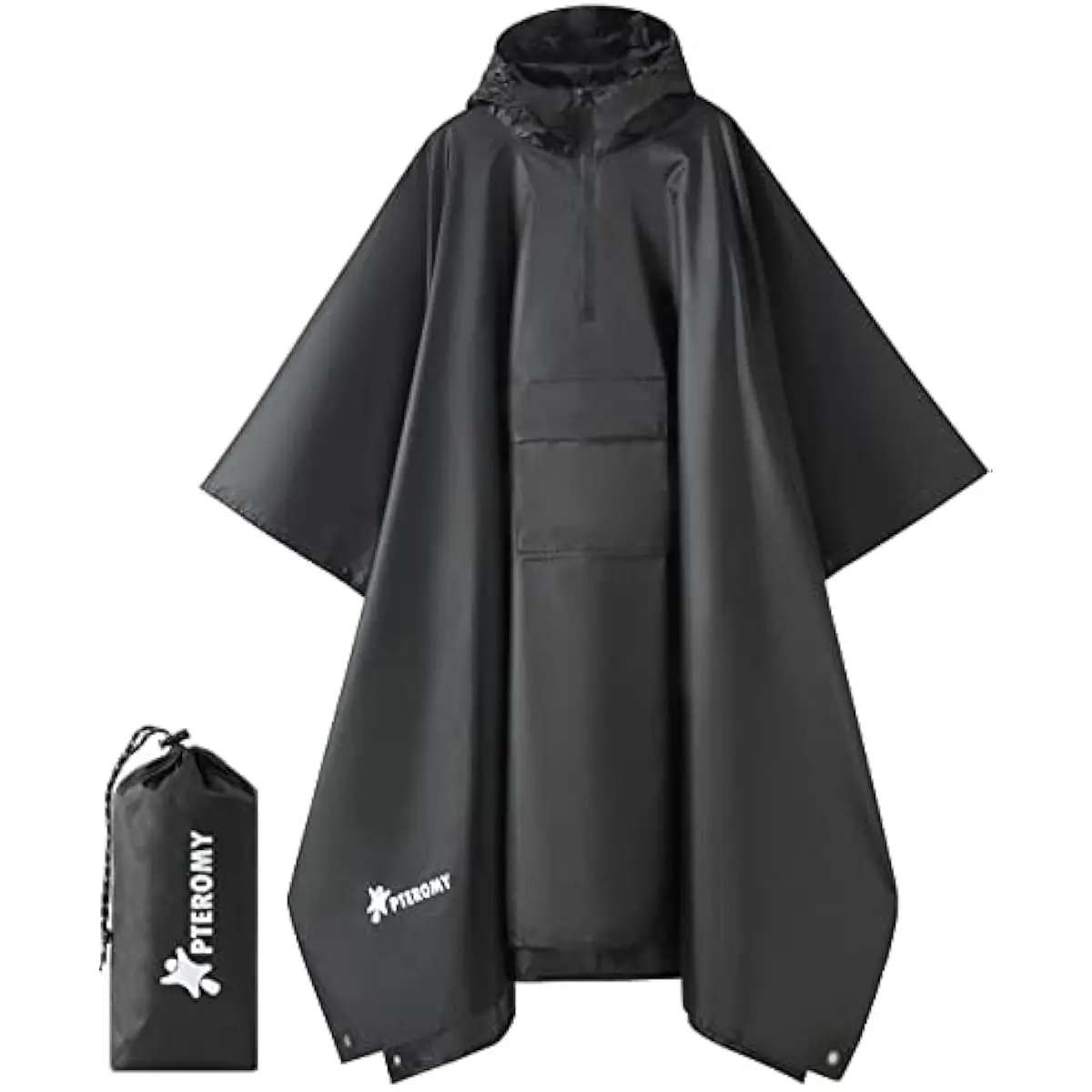 ·[VERSATILE APPLICATION] One size fits most. PTEROMY rain ponchos adult is designed breathable and will keep you dry for outdoor activities of any kind such as hiking, camping, picnic, and outdoor game watching. Great gift idea for hunting gear for men, rain gear, or bushcraft gear