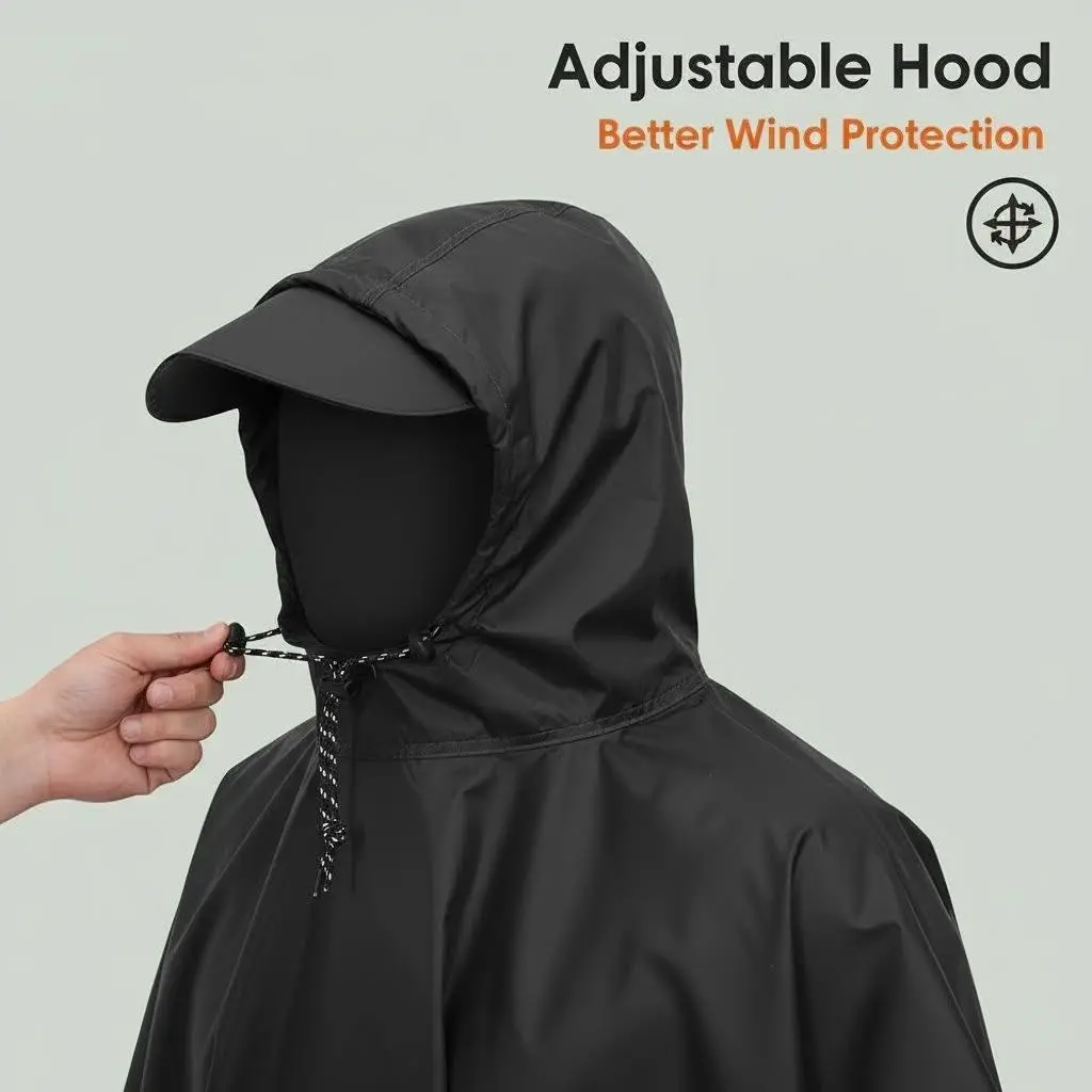 ·[PREMIUM MATERIAL] This rain poncho is made from lightweight yet durable and rip-resistant polyester material. Seams are sealed with waterproof backing material to guarantee no rain will leak from them. Each corner is reinforced and comes with a grommet. Quality buttons along the side are added to help in windy weather. A brim is incorporated in the hood to help you see better