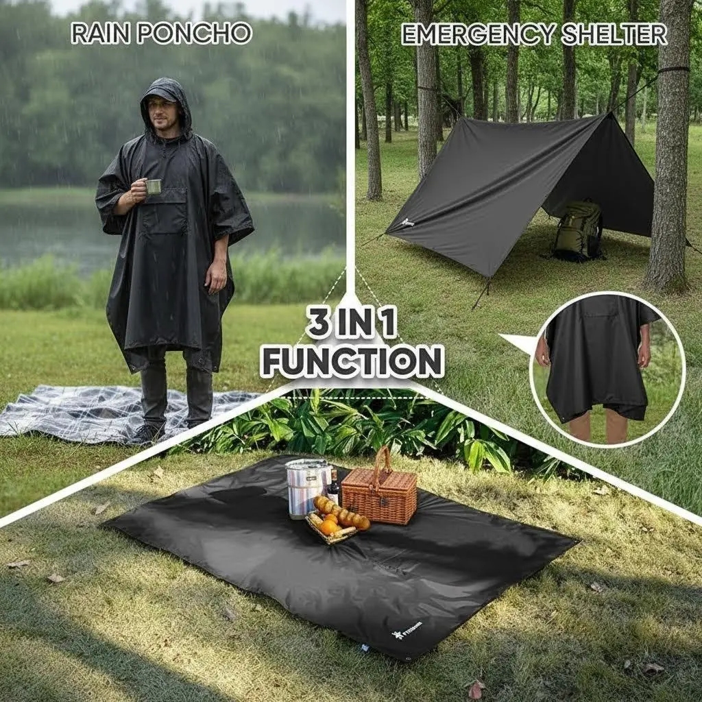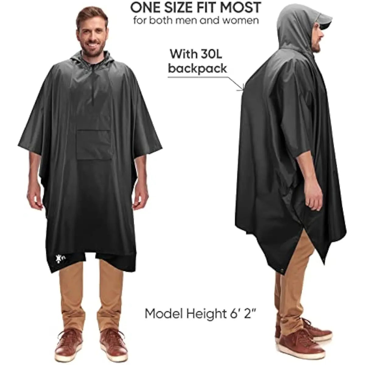 ·[3 IN 1 FUNCTIONAL] Unlike traditional rain coat or rain suit, the rain ponchos for adults are made practical. It can be used flat on the ground as a camping tarp. The grommets on each corner can be used to set it up as an emergency shelter or cover the goods such as backpacks or other camping gear