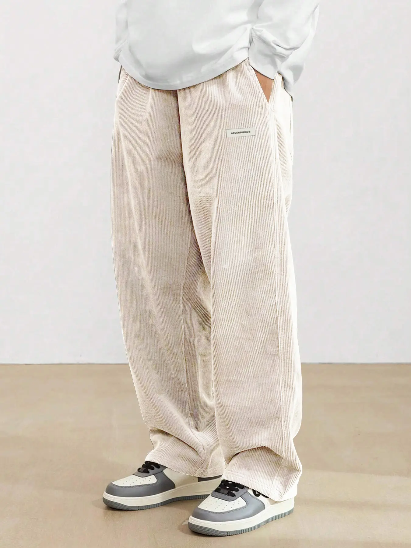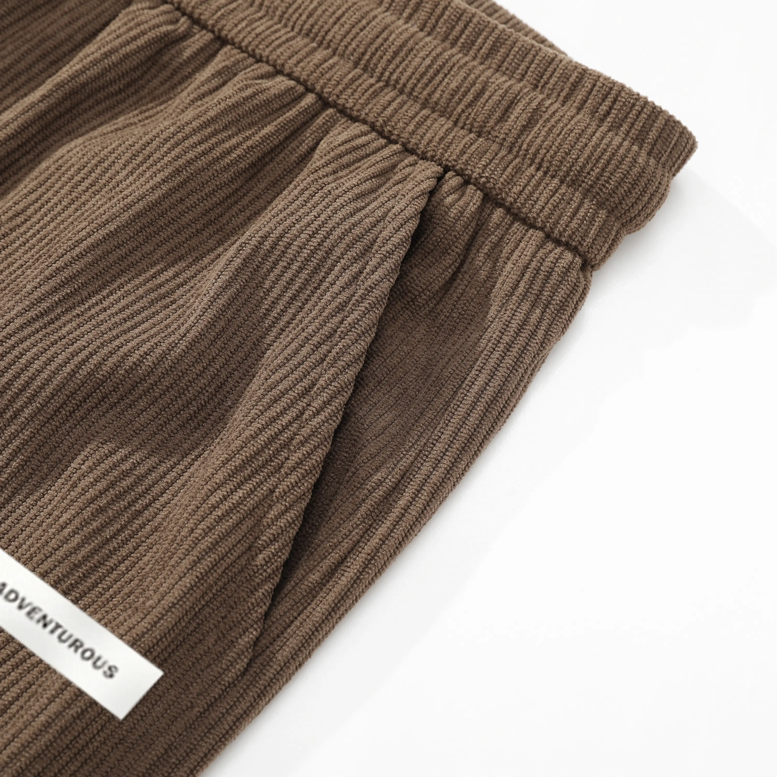 Men’s American vintage corduroy straight-leg pants—trendy, versatile brown casual long trousers with a drawstring waist and loose fit; simple, stylish men’s bottoms suitable for everyday wear and sports.