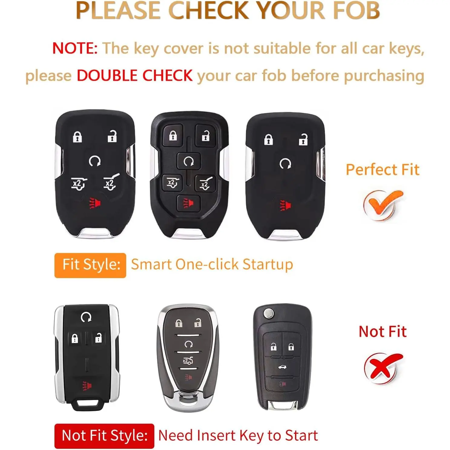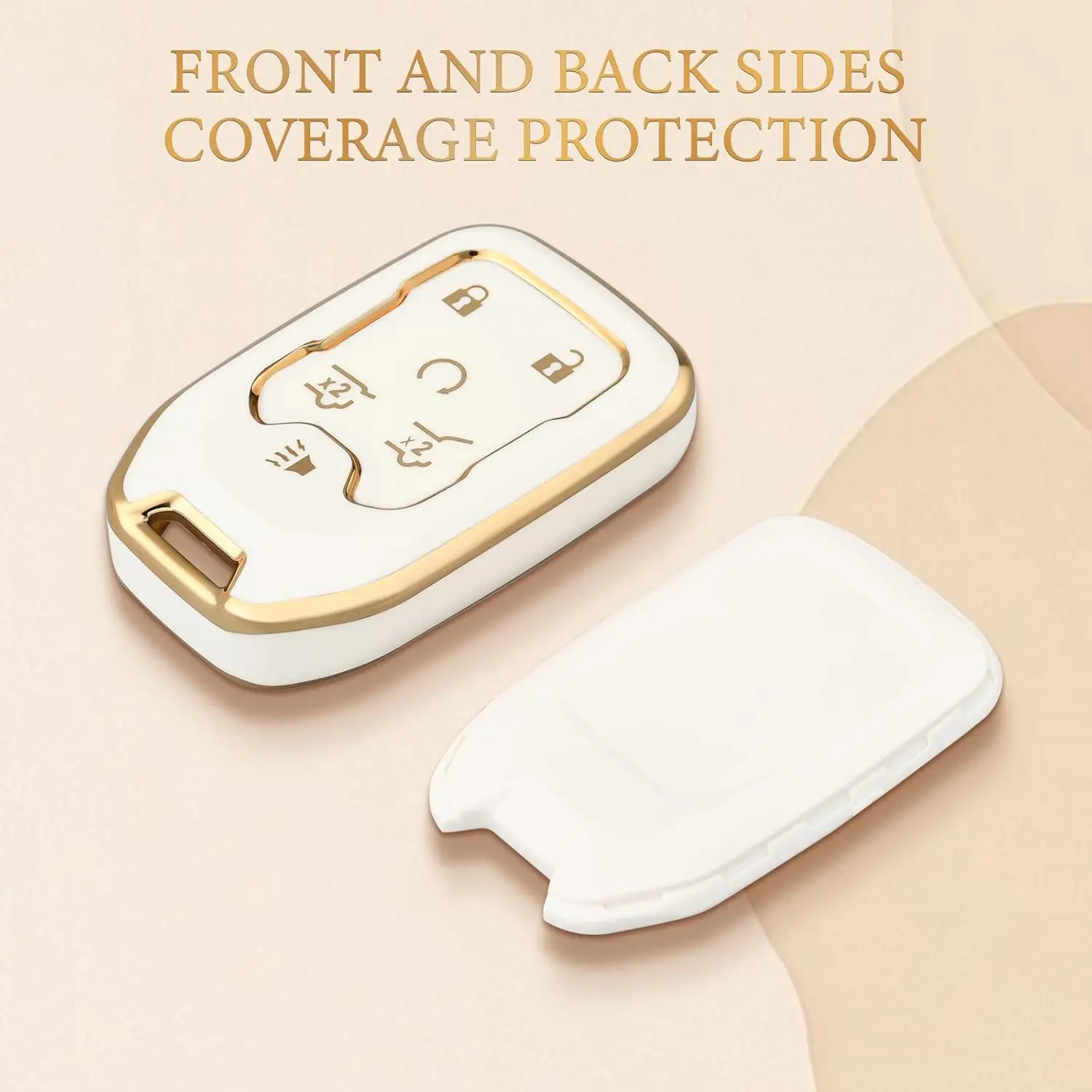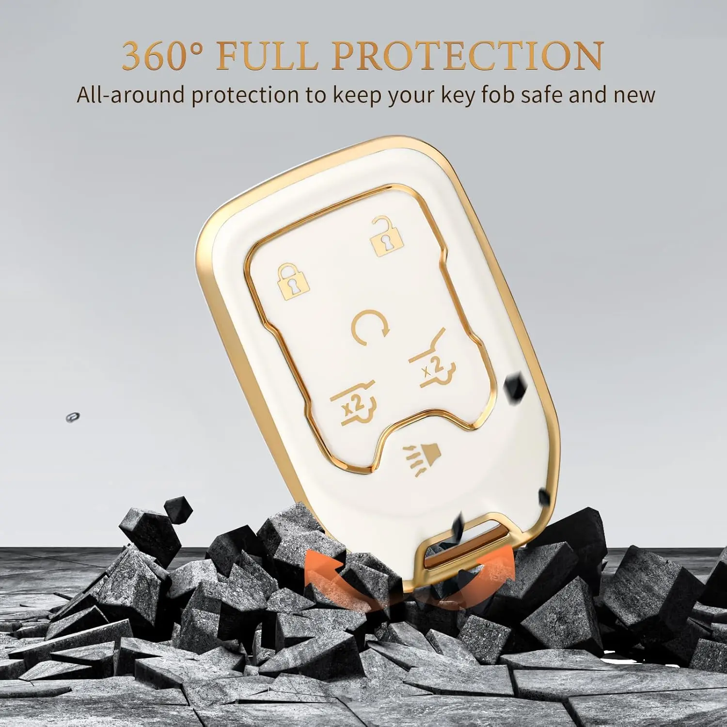 Key Fob Cover with keychain for GMC Yukon/Yukon XL Terrain Acadia Sierra Key Fob Case for Chevy Chevrolet Suburban Tahoe Car Accessories Smart 6 Buttons Key Protector, White