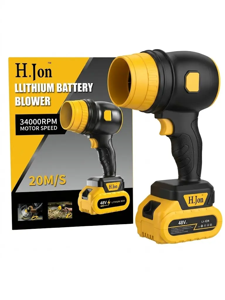 Our 21V Cordless Powerful Air Blower is the ultimate handheld solution for home and professional use. It features a high-performance motor delivering 25W to 1050W adjustable power. This mini turbo jet fan generates ultra-strong airflow for tackling any mess. Weighing 1200g and sized at 24.5159cm, it's ultra-lightweight and compact, making it easy to hold and maneuver.