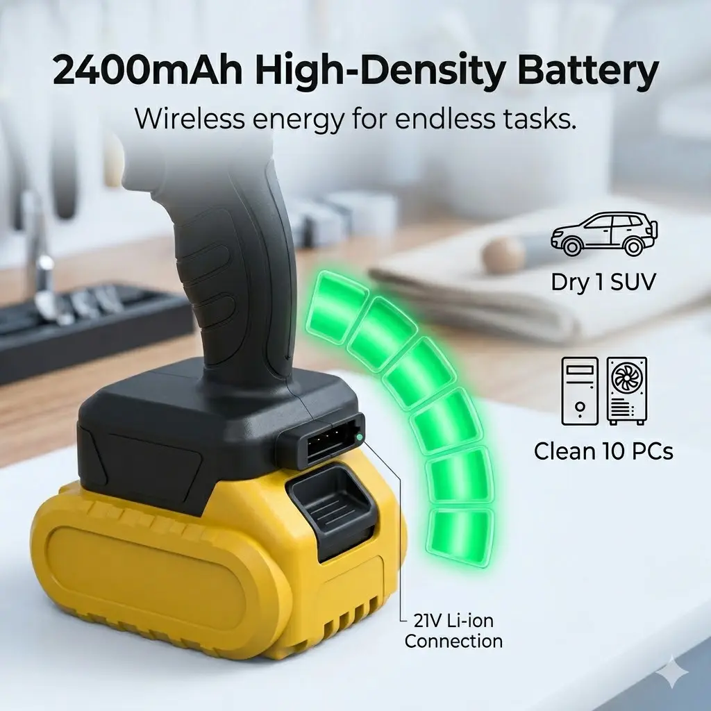 ✅ Ideal for Various Tasks: Clear leaves, blow dust, clean car interiors, remove pet hair, and dry wet surfaces. The ergonomic, non-slip handle ensures a comfortable grip. The cordless design eliminates tangled wires, allowing you to clean anywhere, anytime.