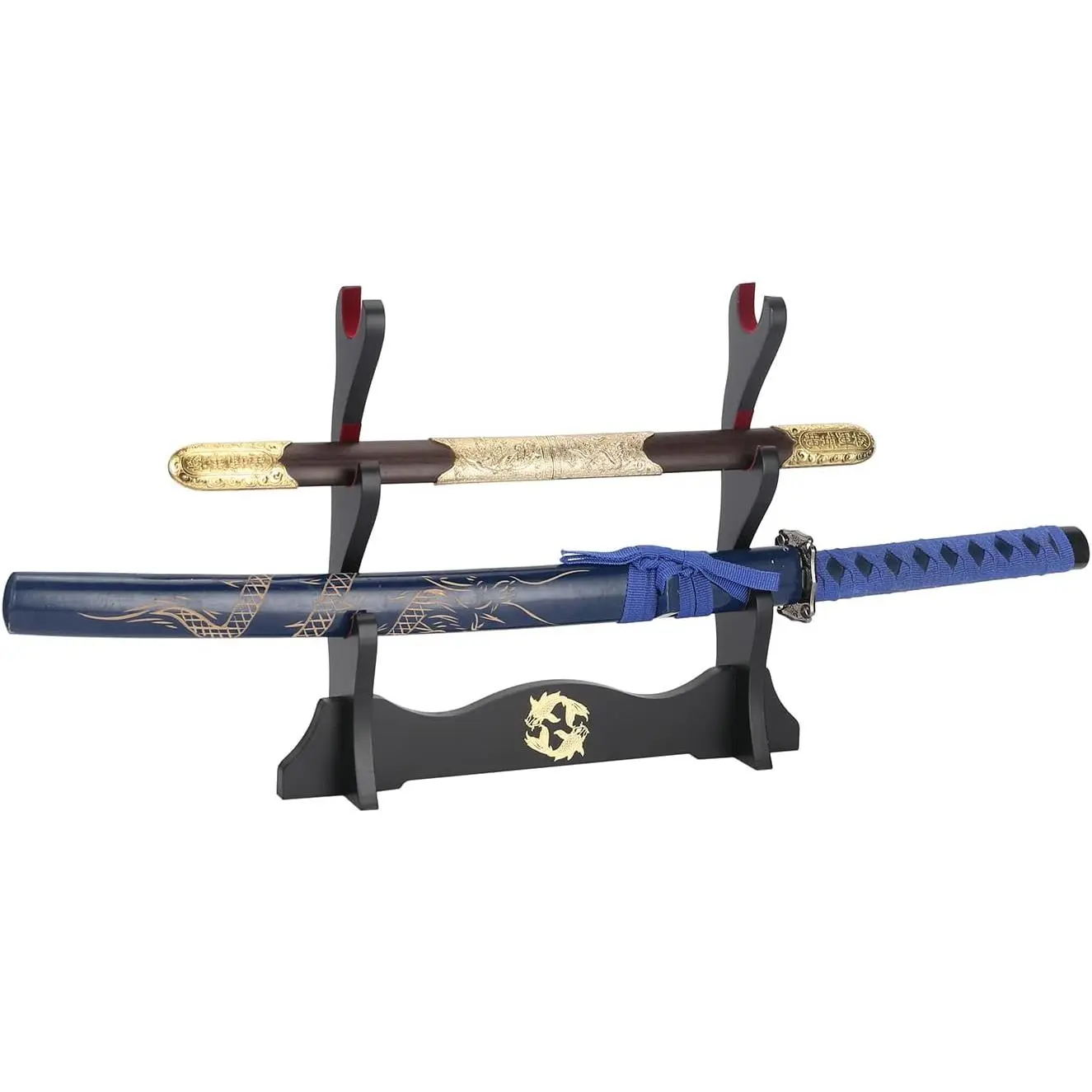 Sword Holder Japanese Velvet Padded Katana Stand Samurai Display Rack Support All Tanto Sword yin and yang 3 Tier