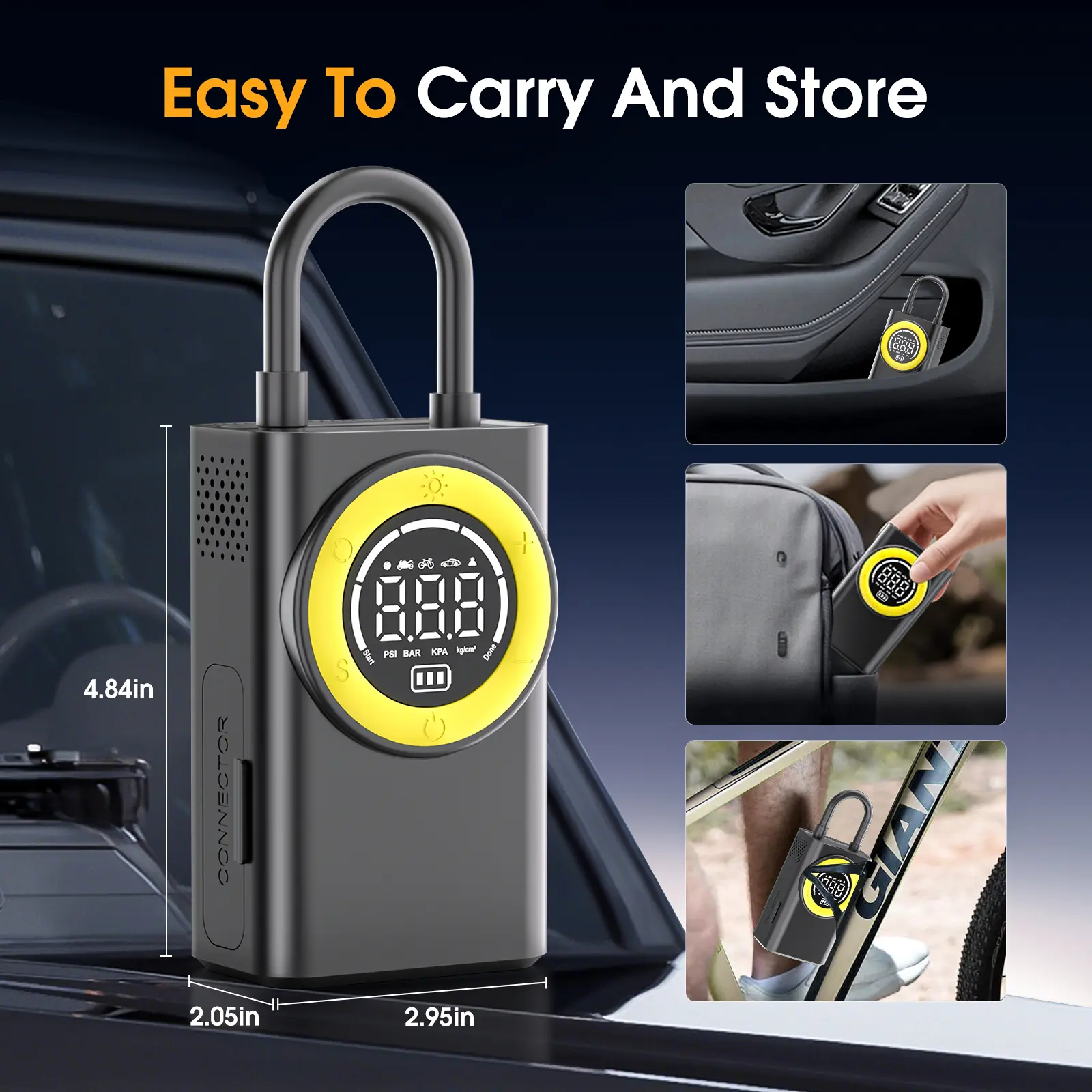 ✨ Compact and Powerful: This portable car tire inflator features a 15000mAh cordless air compressor. Perfect for inflating car tires, motorcycles, and bikes. No more worries about flat tires on the go.