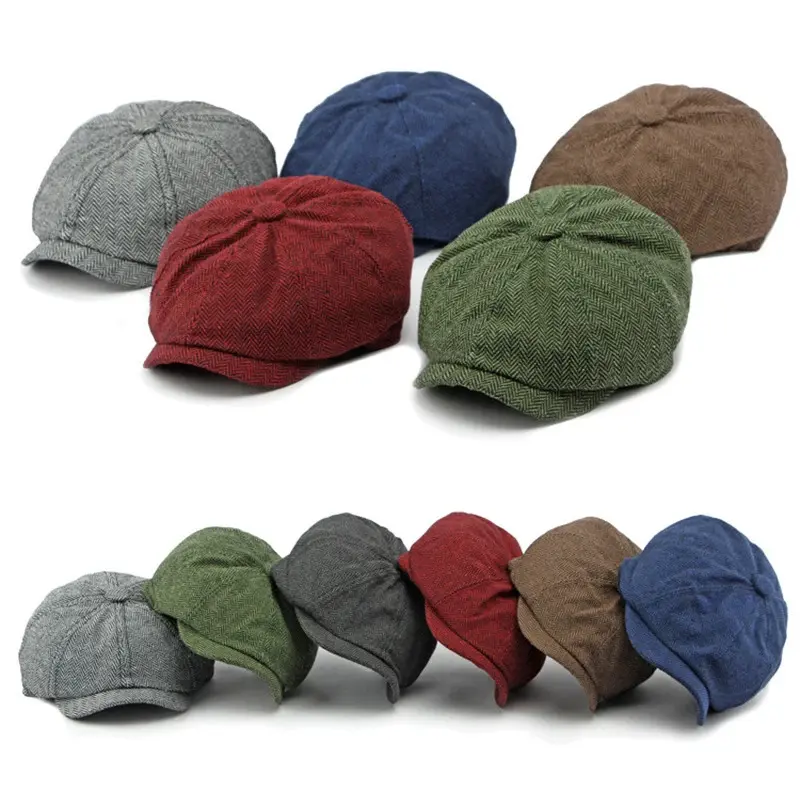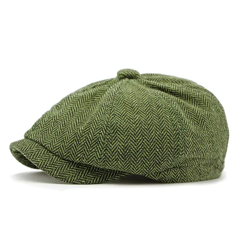 Twill Flat Cap for Men Women Herringbone Newsboy Caps British Style Octagonal Hat Solid Green Red Detective Cabbie Beret Hat
